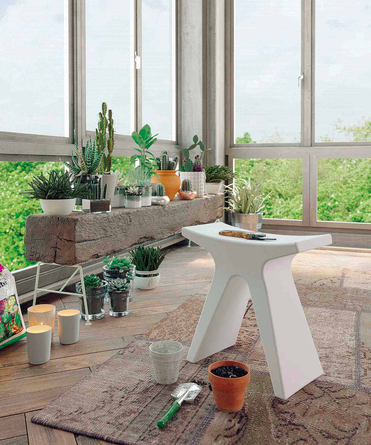 Prue est un tabouret bas d'extérieur amusant et fonctionnel caractérisé par un design unique et minimal mais en même temps aussi élégant et chic, remplissant non seulement une fonction pratique mais aussi esthétique pour tous les environnements, domestiques et publics. Prue est entièrement fabriqué en polypropylène de haute qualité et est disponible en 6 variations de couleur.
