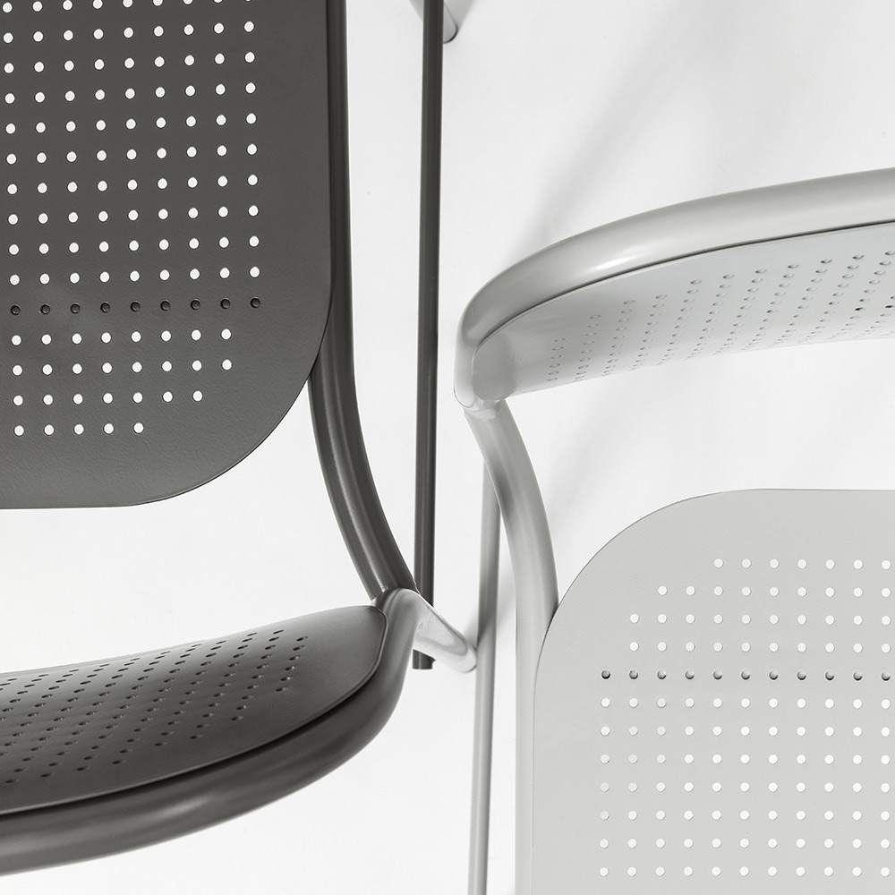 esthétique vivante et amusante mais aussi pour ceux qui aiment un style plus sobre et élégant. La possibilité d'empiler souligne également son côté fonctionnel et en fait une solution parfaite également pour les environnements contractuels tels que les bars et les restaurants où il est essentiel de pouvoir optimiser les espaces lorsque les fauteuils ne sont pas utilisés.