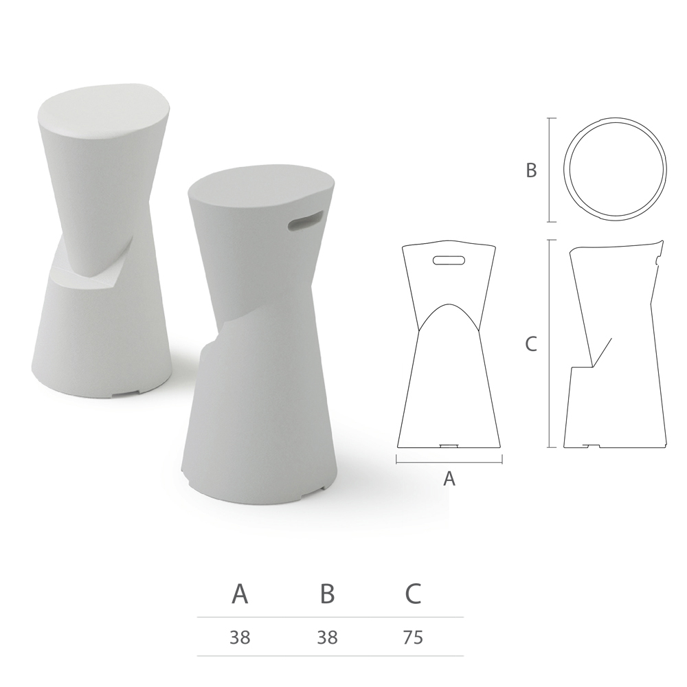 Tabouret d'extérieur entièrement fabriqué en Italie avec structure en polyéthylène coloré au style simple, élégant et raffiné. Un complément d'ameublement qui, grâce au traitement avec des matières premières de haute qualité, offre robustesse et résistance à tous les agents atmosphériques, se révélant excellent pour meubler tout espace extérieur au caractère indiscernable.