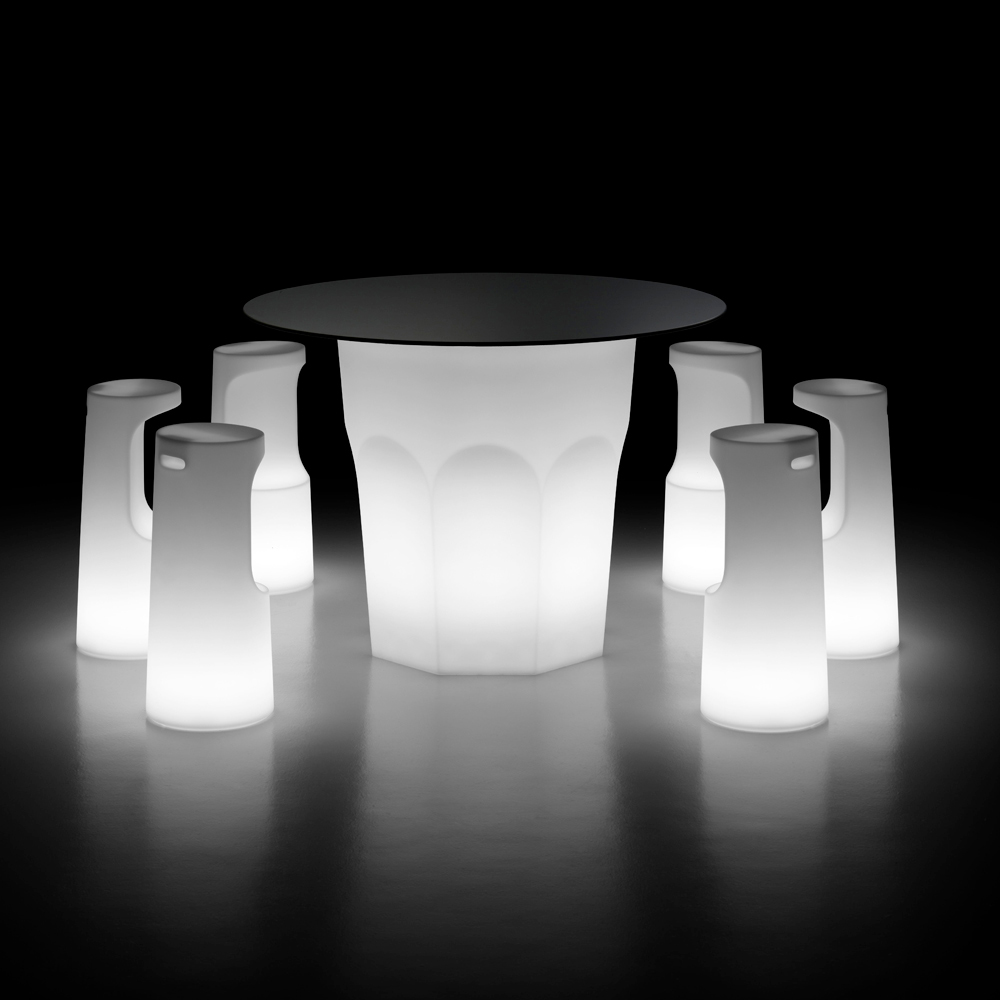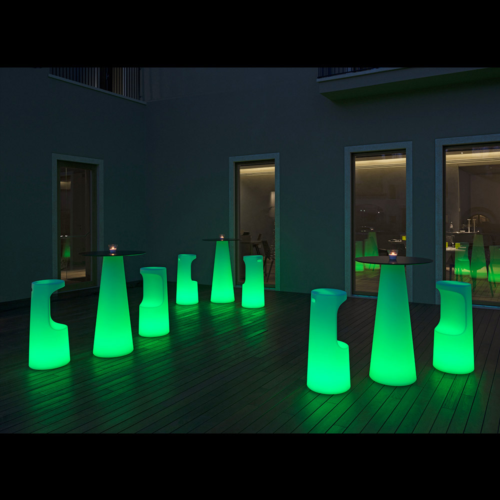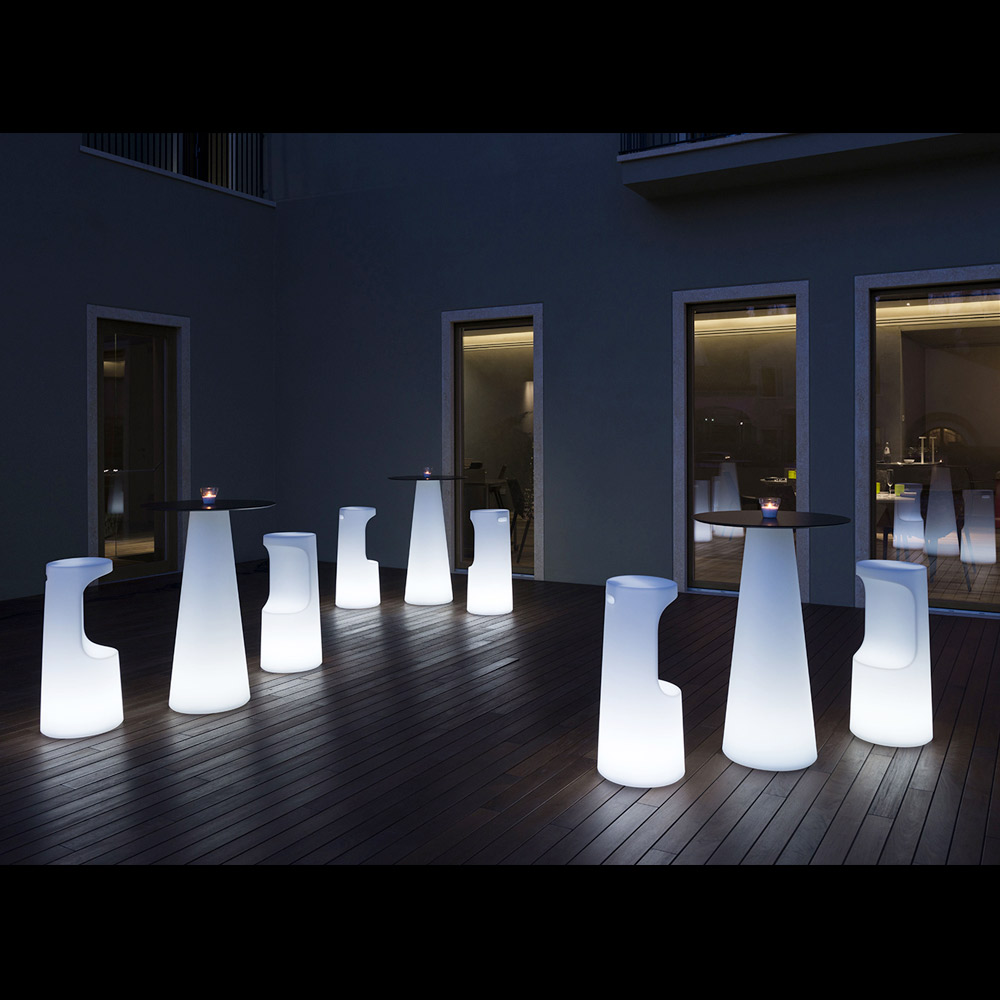 Tabouret haut design en polyéthylène pour usage extérieur avec éclairage LED Fabriqué en Italie.