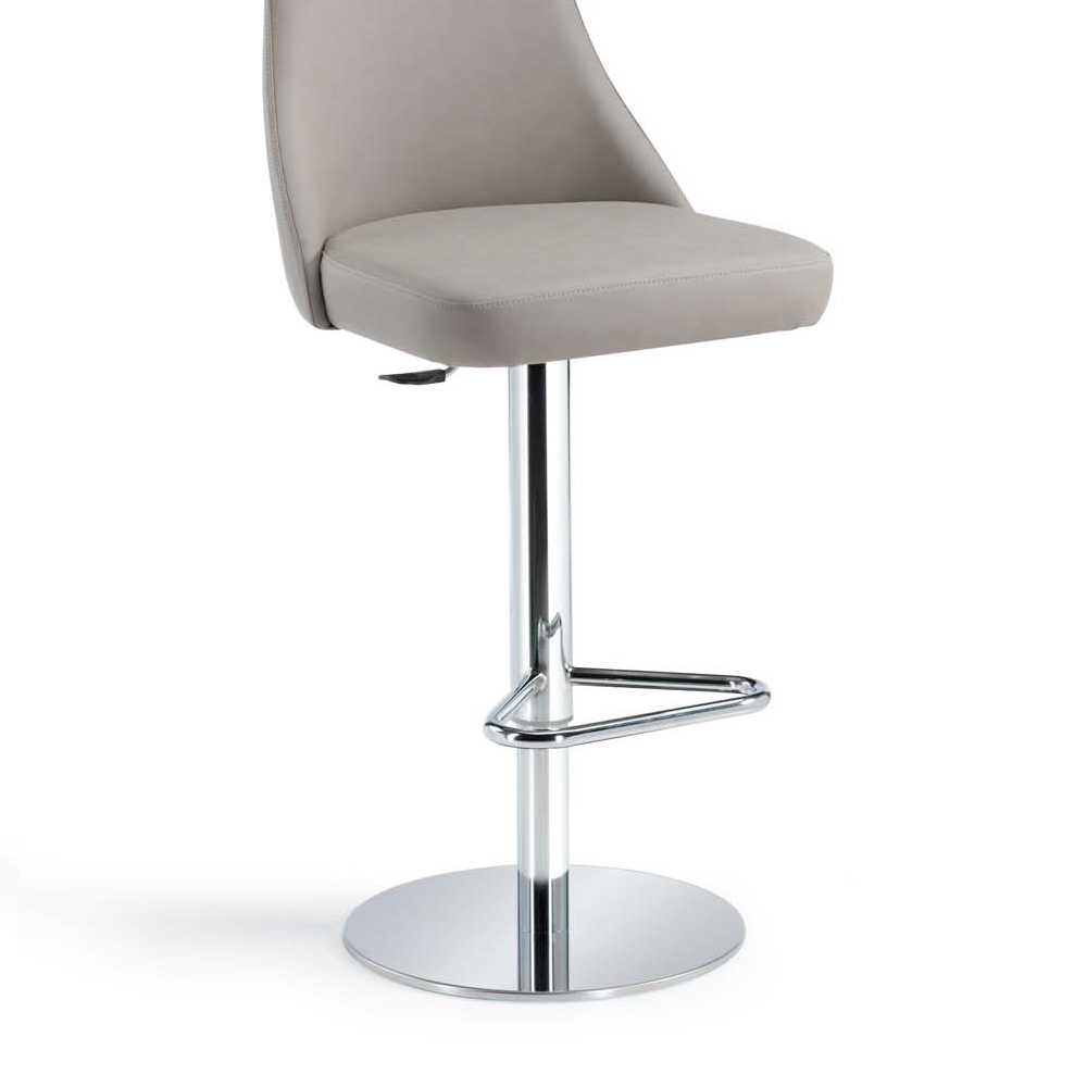 Tabouret de cuisine entièrement fabriqué en Italie , avec assise recouverte de simili cuir gris élégance et structure ronde pivotante en métal chromé avec vérin à gaz réglable 59/85 cm max. Tabouret au goût classique et raffiné , avec une assise très confortable et un dossier enveloppant, parfait pour tous ceux qui aiment meubler leur cuisine avec goût et design .