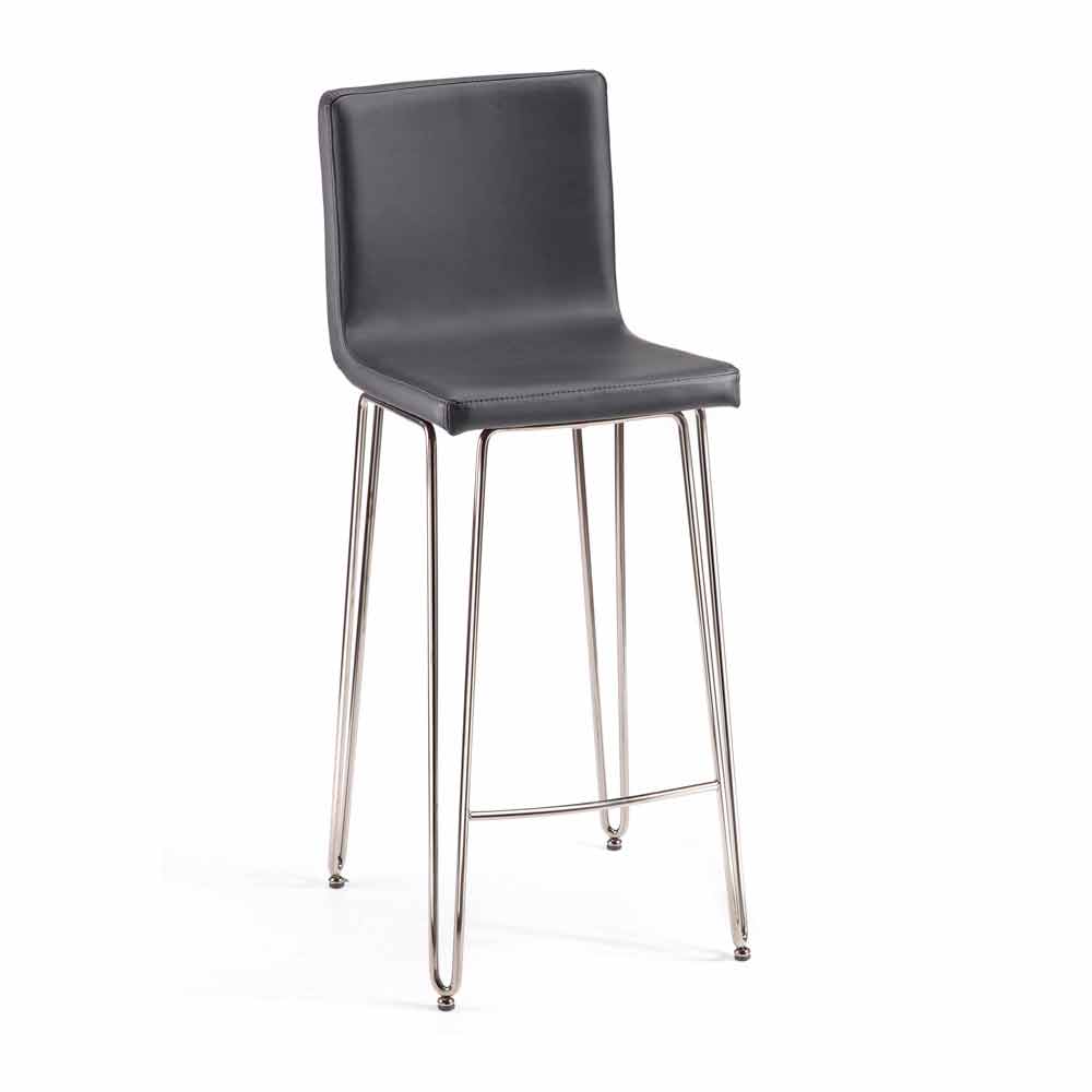 - jambes en métal finition chromée et assise revêtue en écocuir noir (matériau composé par une base en coton et une couche de matériau synthétique résistant au frottement et à l’usure).