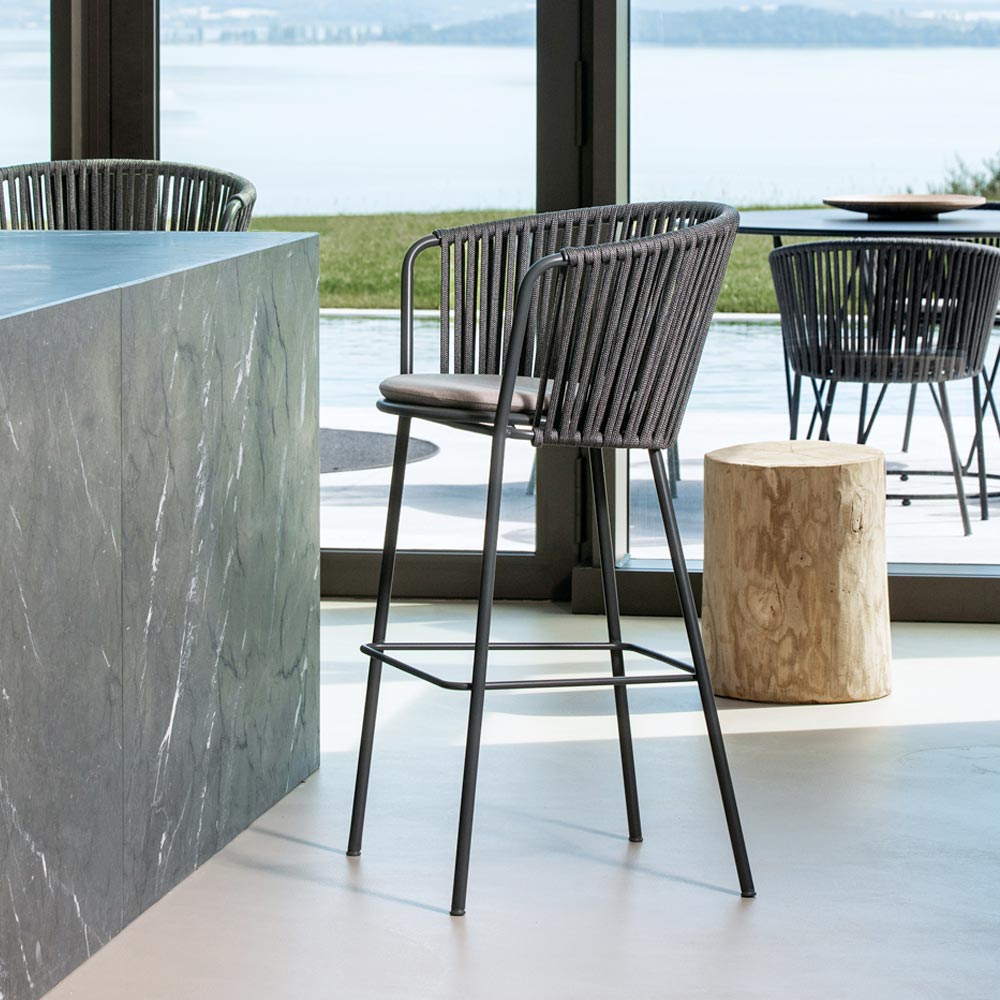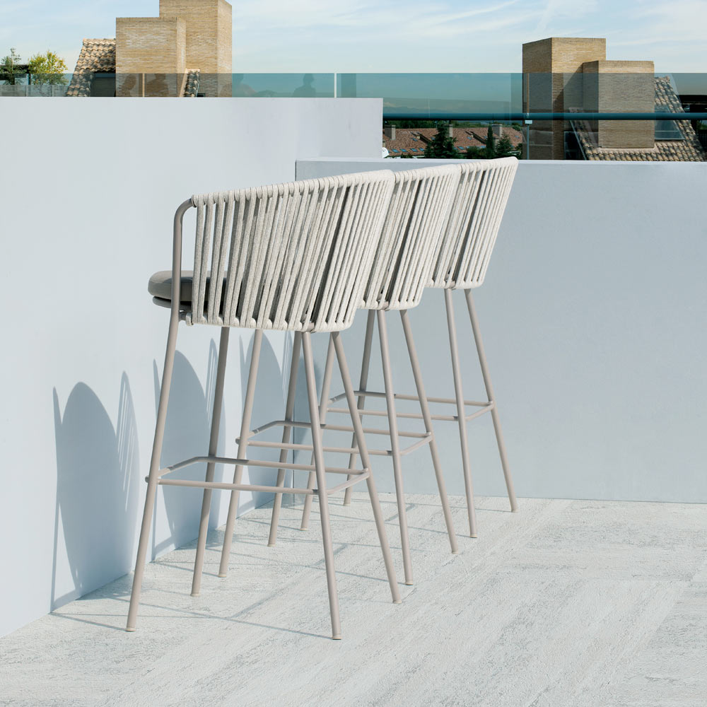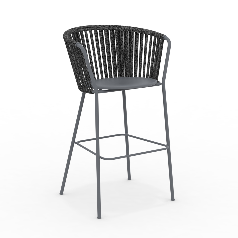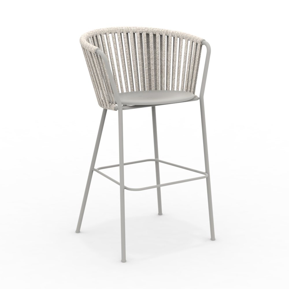 La structure en acier inoxydable garantit solidité et résistance aux intempéries, tandis que le tressage en corde apporte légèreté et raffinement, enveloppant l'assise d'un confort optimal. Son design ergonomique et ses lignes arrondies garantissent une assise agréable et relaxante.