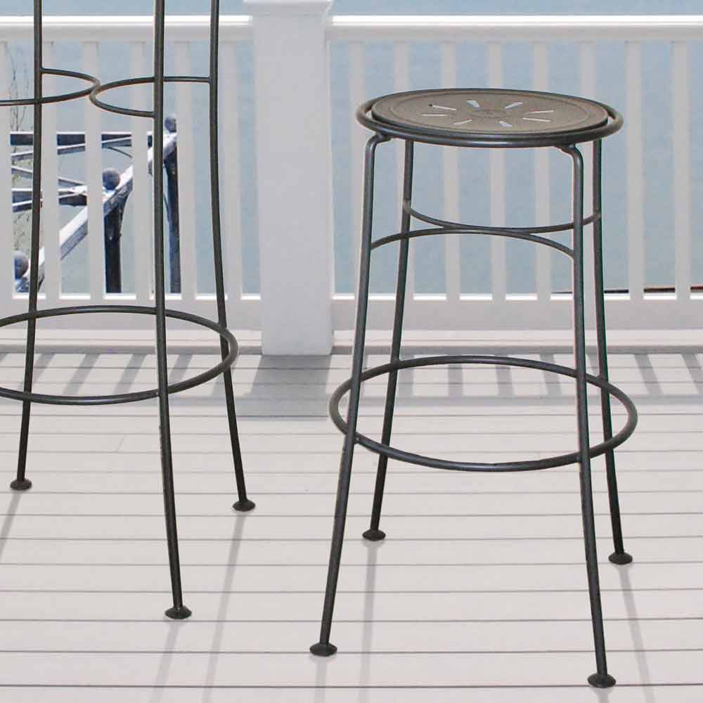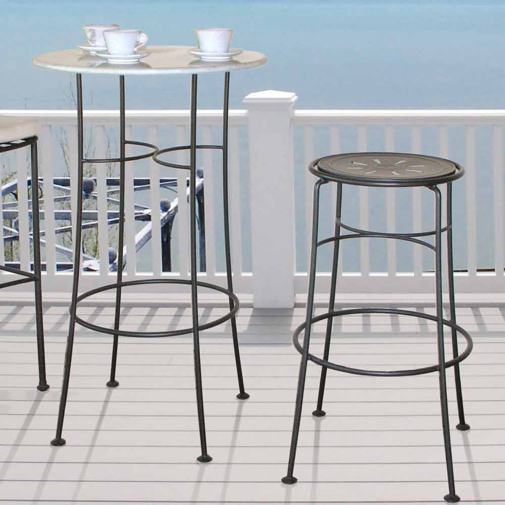 Tabouret haut de jardin en fer peint fabriqué artisanalement en Italie.