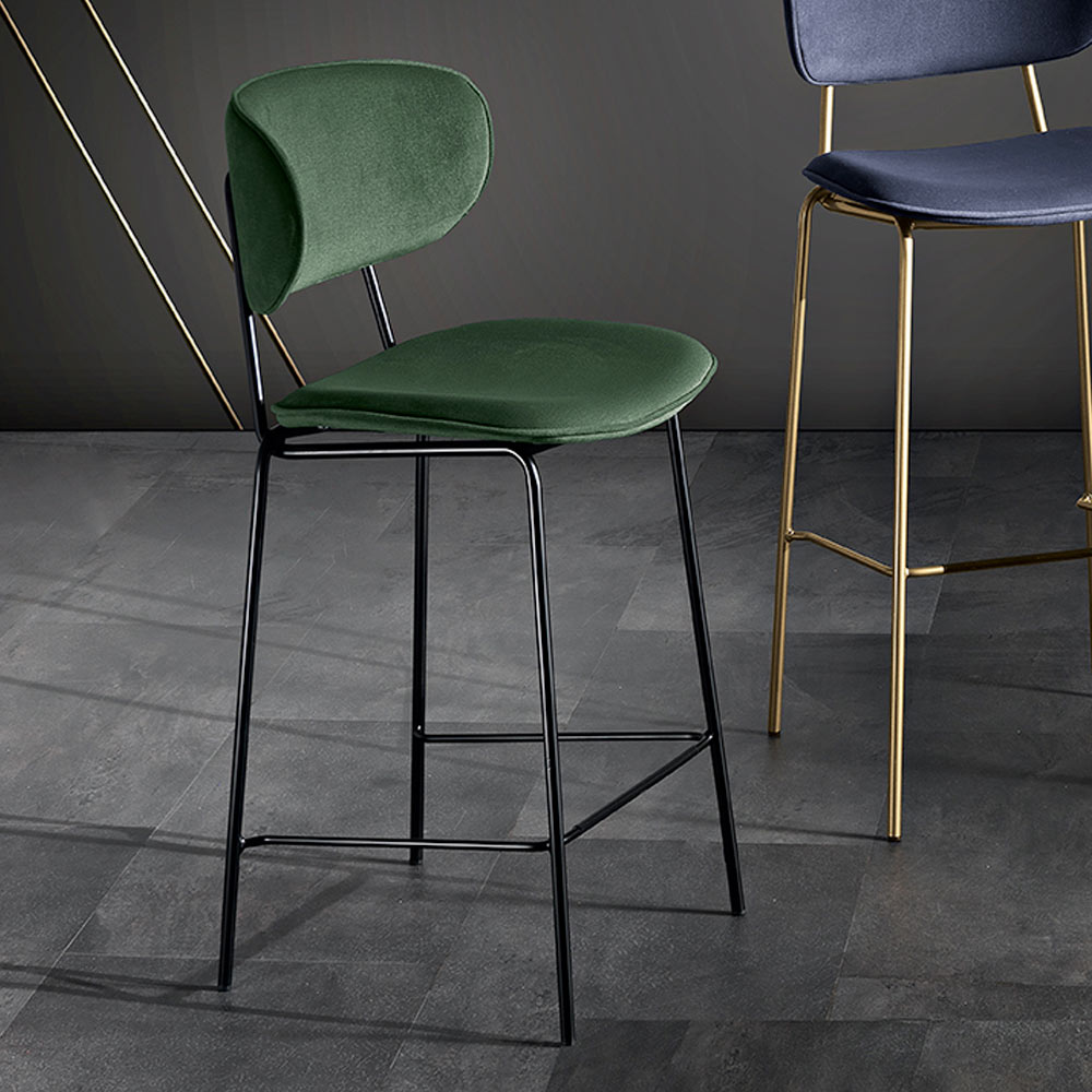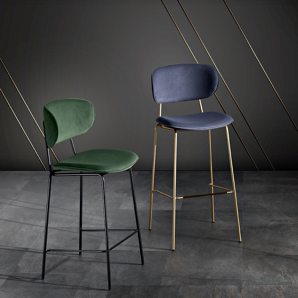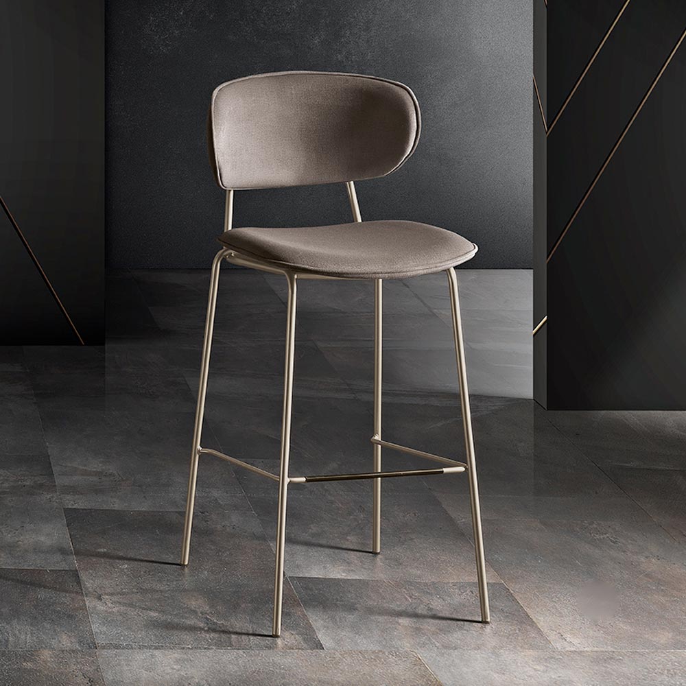 Ce tabouret est un bijou de design, parfait pour ceux qui souhaitent allier fonctionnalité et style. Le siège et le dossier incurvé sont recouverts d'un tissu, offrant une expérience d'assise confortable et élégante. La silhouette simple mais sophistiquée du siège est accentuée par les pieds en métal , qui ajoutent une touche de chaleur moderne et une sensation de légèreté visuelle.