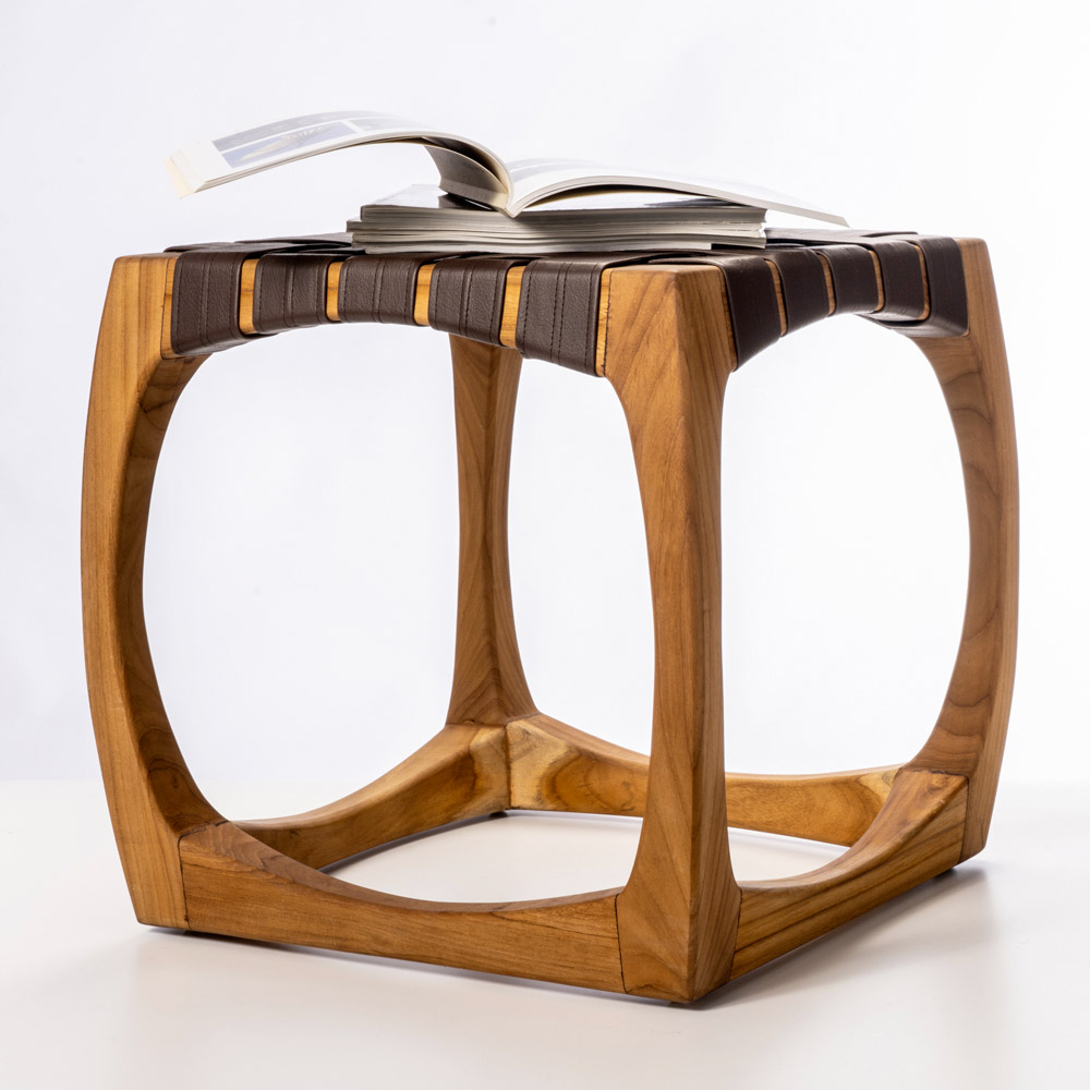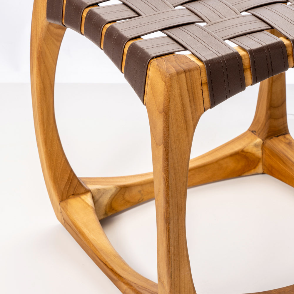 Ce tabouret de salle de bain est un véritable chef-d'œuvre de design et de fonctionnalité. Sa structure courbée en teck massif démontre un savoir-faire artisanal et offre une stabilité inégalée, tandis que le tressage en cuir de l'assise ajoute non seulement une touche d'élégance, mais assure également une assise confortable. Aux dimensions généreuses, ce tabouret sert non seulement de siège mais également de surface d'appui pour des objets personnels tels que des trousses de beauté ou des accessoires de salle de bain. C'est une pièce polyvalente qui s'intègre parfaitement dans n'importe quelle salle de bain, alliant praticité et style impeccable .