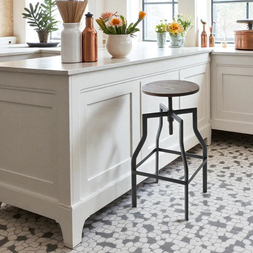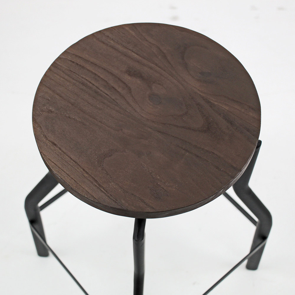 Ce tabouret est doté d'une structure en métal peint en noir de style industriel et d'une assise en noyer de style industriel, réglable en hauteur jusqu'à 76 cm. Il vous assure un style et un confort optimaux.