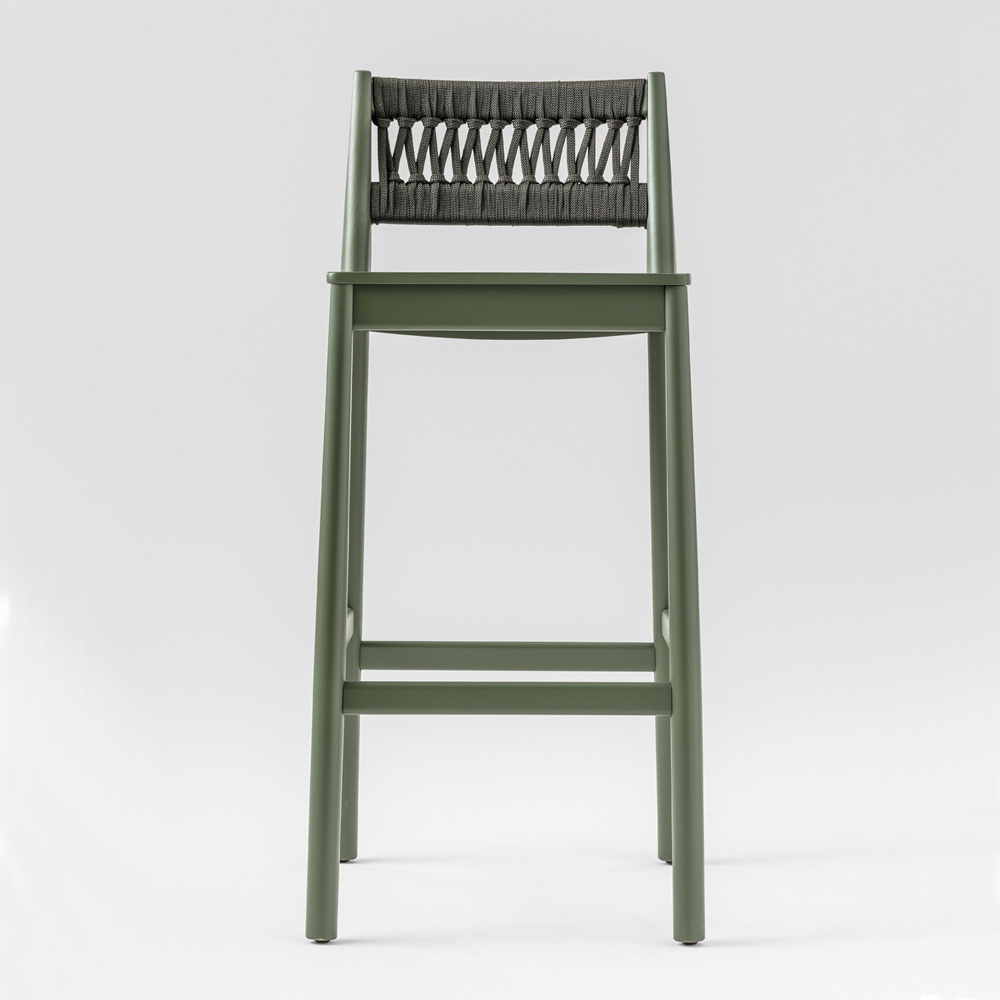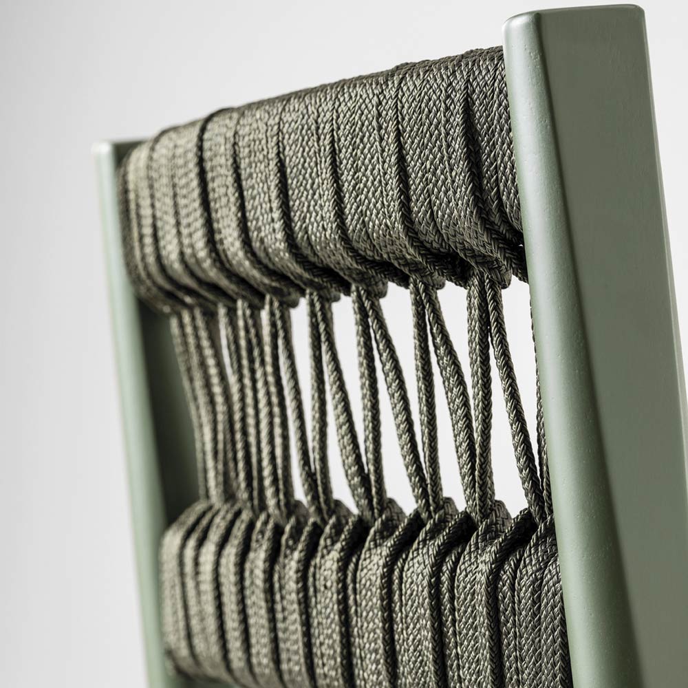 Tabouret haut fabriqué en Italie avec structure en bois de hêtre laqué et dossier en cordon vert militaire. Simple mais à la fois original et créatif, ce tabouret incarne un design traditionnel revu pour créer un produit innovant et moderne , caractéristiques obtenues grâce à la particularité du tissage de corde qui recouvre tout le dossier pour donner un look nouveau et moderne. avant-garde. Grâce à la finition discrète et sobre de la structure, elle s'avère être une assise extrêmement polyvalente dont la personnalité est décidée par la couleur choisie pour la corde, réussissant à proposer des solutions sobres et discrètes ou extravagantes et colorées.