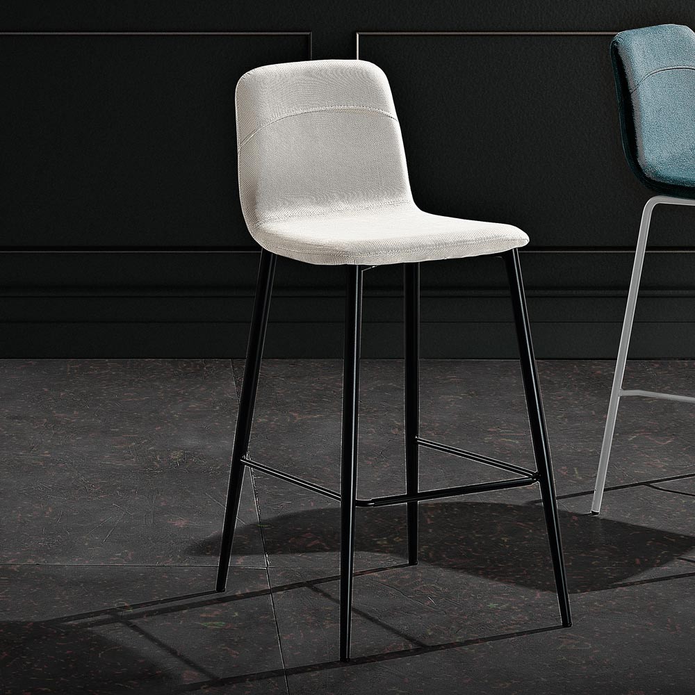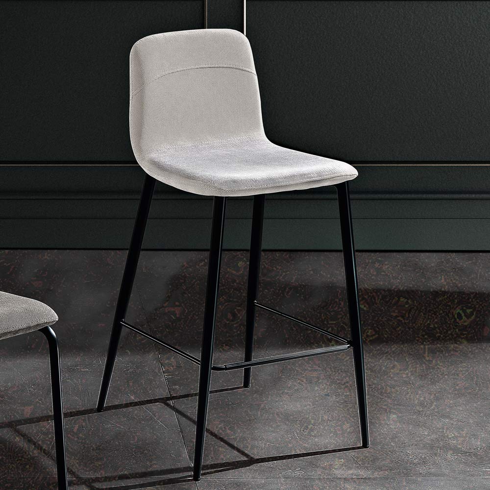 Tabouret de cuisine avec assise recouverte de tissu et structure en métal avec tube rond (diamètre 16 mm) en finition anthracite mate RAL 7021 avec repose-pieds pratique, fabriqué en Italie.