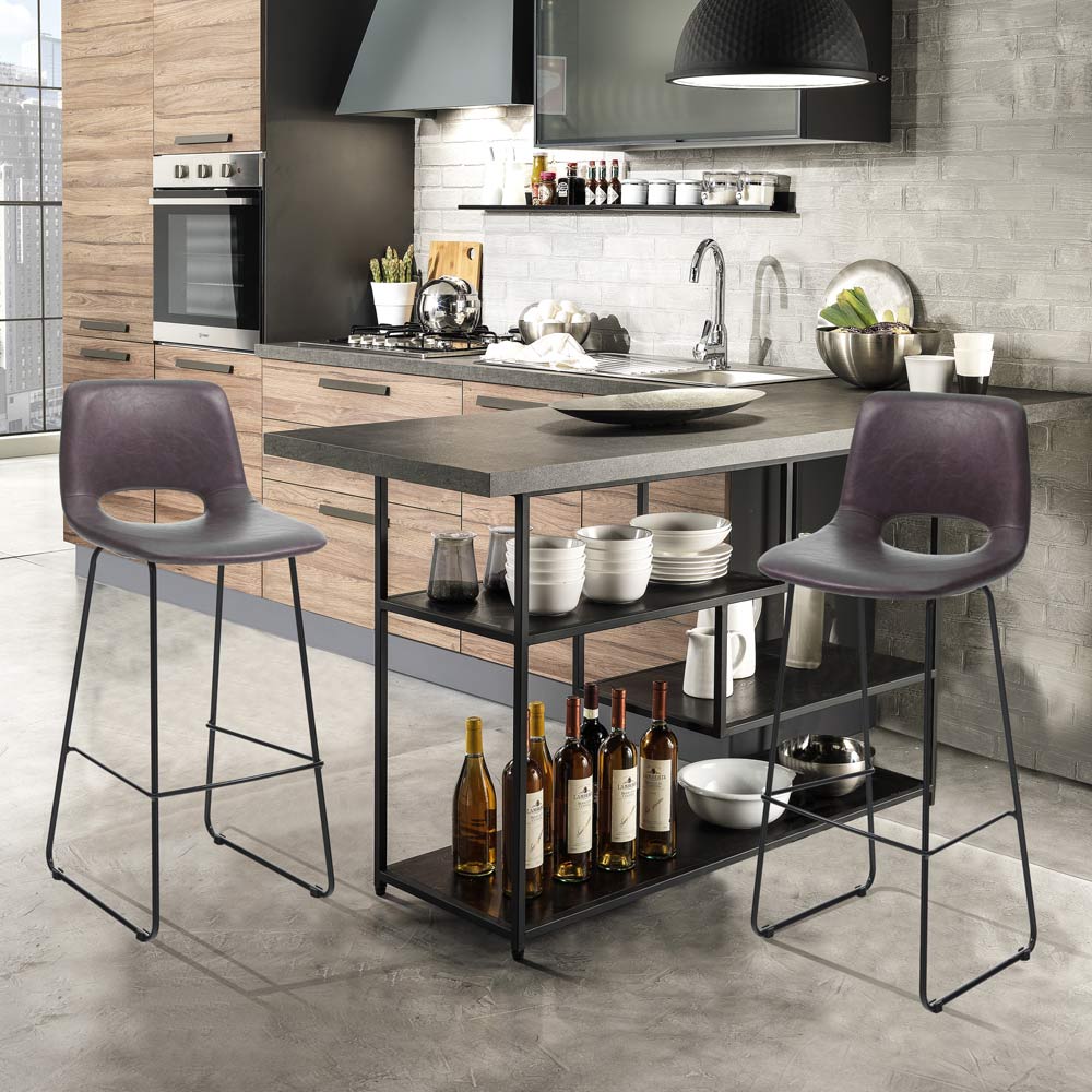 Tabouret Haut de Cuisine en Cuir Synthétique et Métal Noir 2 Pièces - Yuri