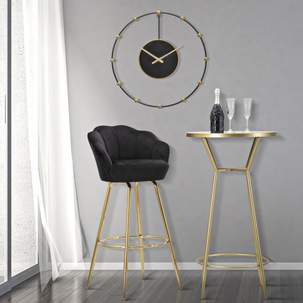 Tabouret Haut en Fer Doré avec Assise Recouvert de Velours - Annina