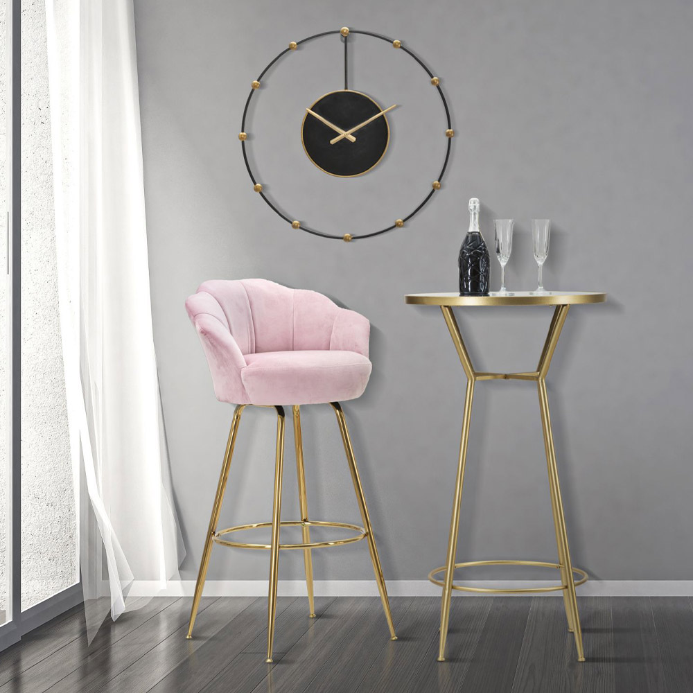 Avis - Tabouret Haut en Fer Doré avec Assise Recouvert de Velours - Annina