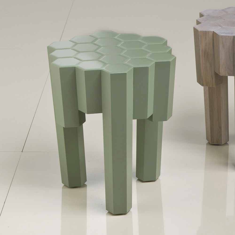 Tabouret/table basse en bois composé des hexagones. Les tables basses sont caractérisées par la plénitude du bois massif et par un dessin alvéolaire à nid d'abeilles qui, grâce aux six côtés, les rendent adaptés à être mis ensemble et composer systèmes multiples. Begga est disponible dans les finitions: érable blanchi couché, acajou naturel brillant ou laqué vert sauge. Sélectionnez dans le menu déroulant la finition que vous souhaitez.
