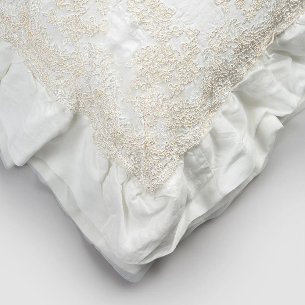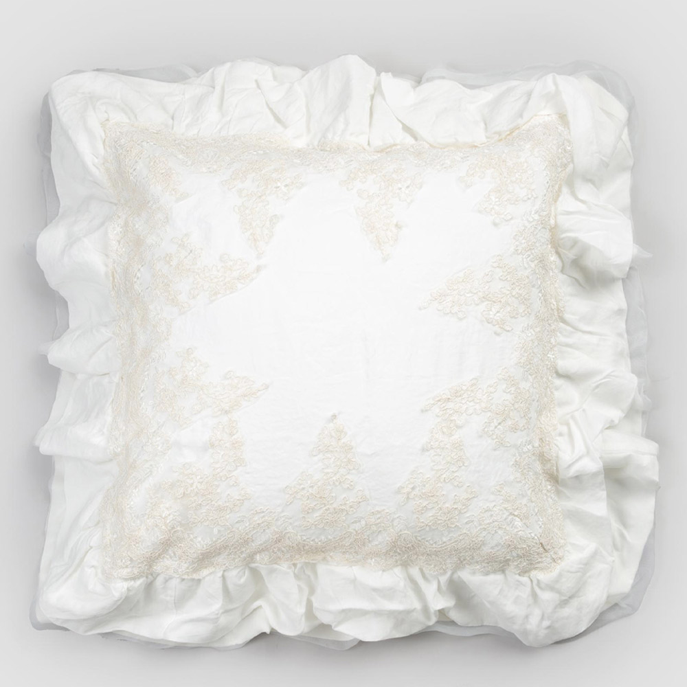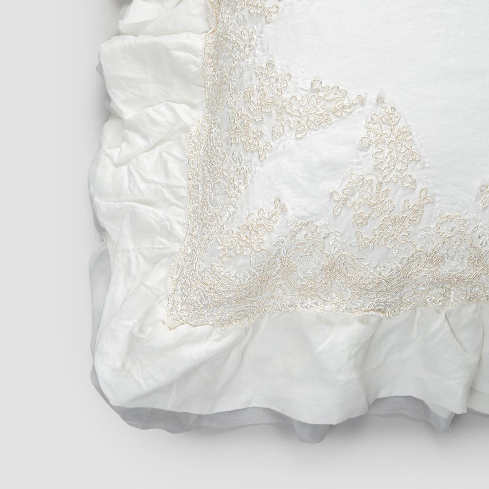 La valeur de la tradition rejoint le style de vie moderne avec cette taie d'oreiller en lin blanc naturel avec une dentelle élégante sur les bords et les volants, pour des coussins décoratifs au design carré. La taie d'oreiller est fabriquée en Italie, composée à 100% de lin de haute qualité et rendue douce au toucher grâce à des traitements spéciaux qui améliorent son aspect naturel. C'est un tissu idéal pour le lit car il est hypoallergénique et antibactérien , grâce à l'utilisation de colorants naturels et hypoallergéniques qui donnent brillance et panache. Légèreté , liberté, élégance et pureté sont les maîtres mots contenus dans ce produit au charme noble et au tissu fin .