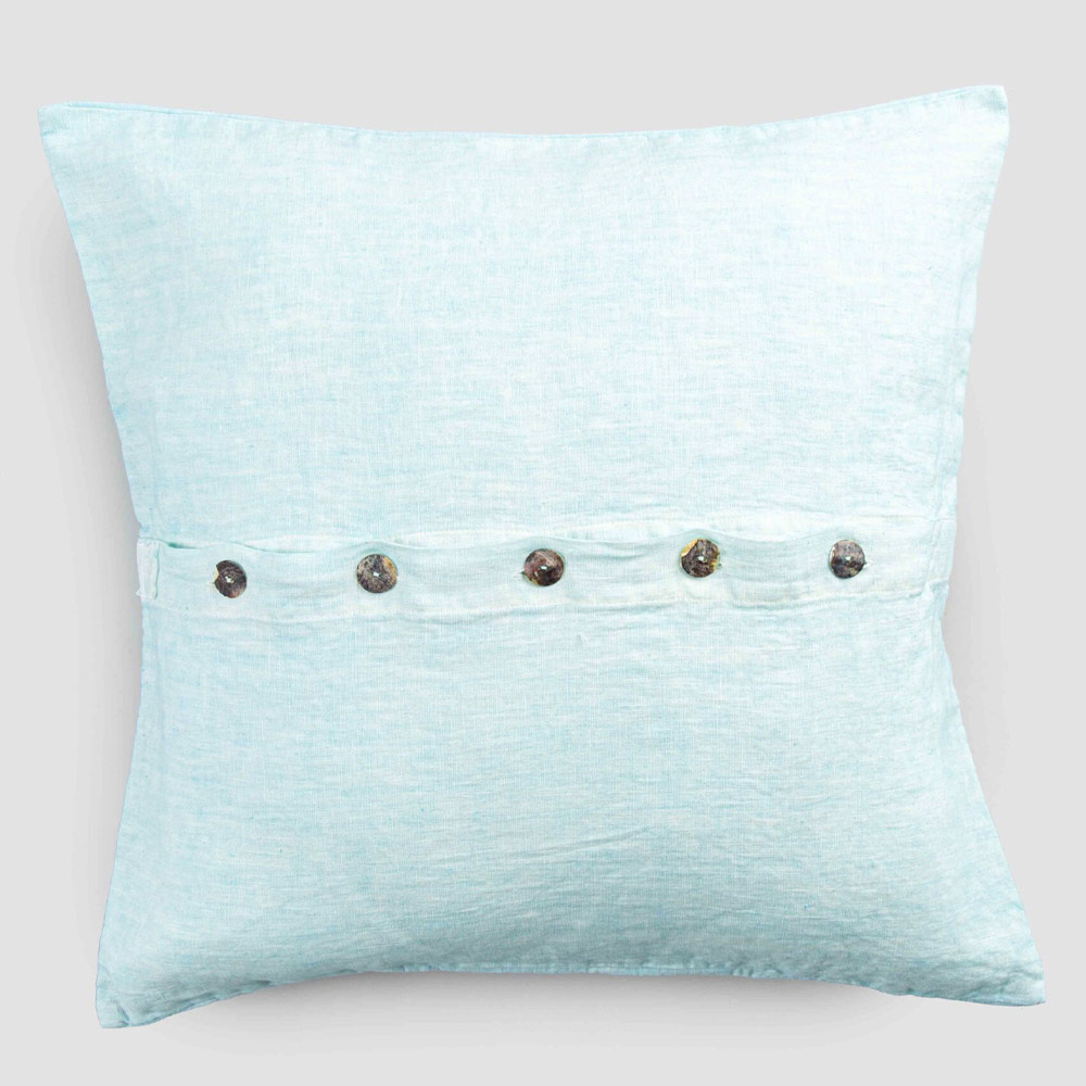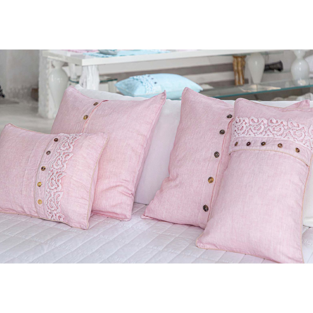Taie d'oreiller en lin avec fermeture centrale avec boutons en nacre, 2 finitions de luxe fabriquées en Italie.