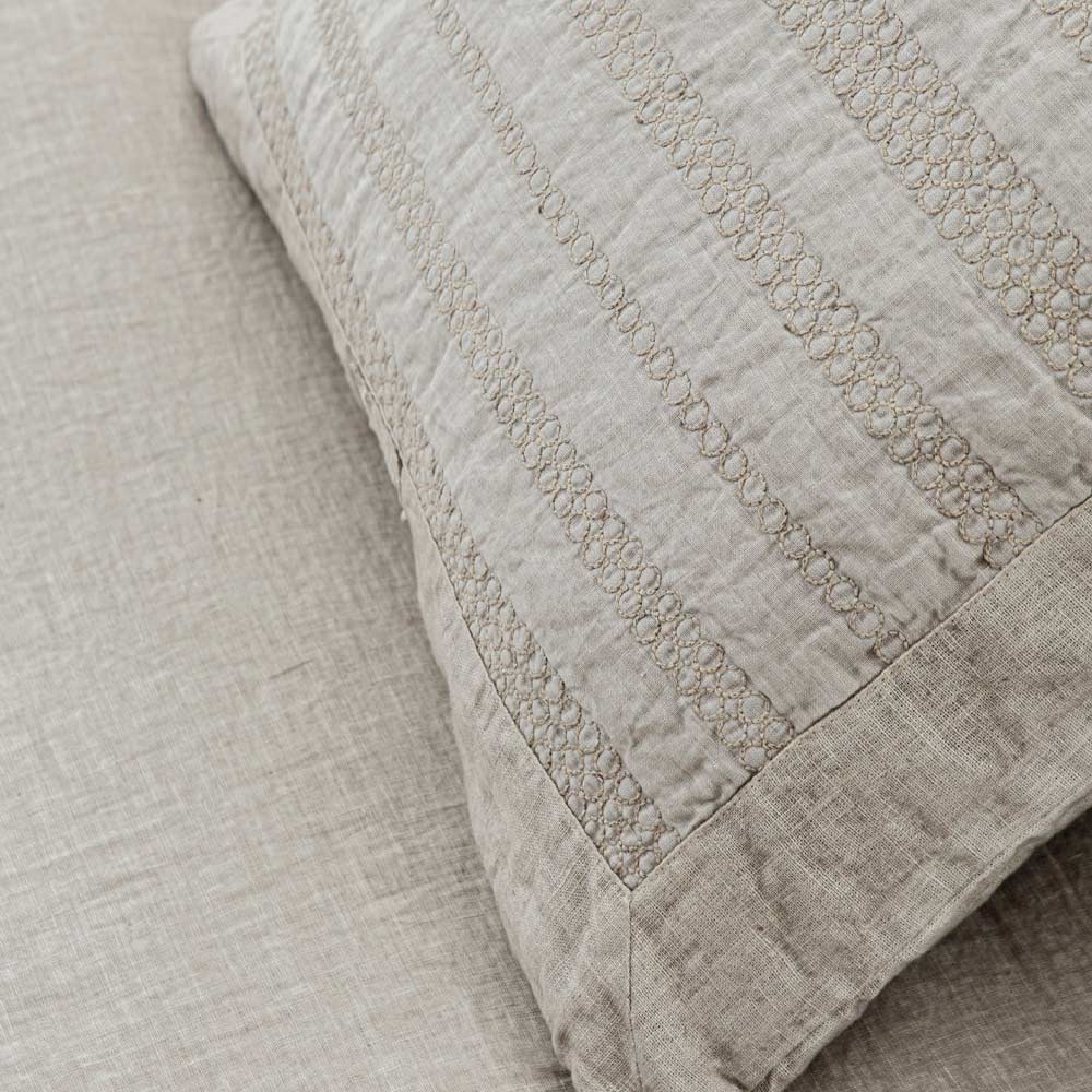 taie d'oreiller en lin ornée de