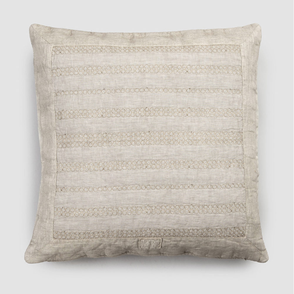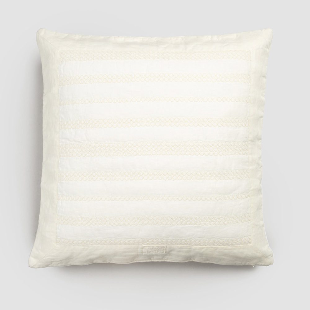 Taie d'oreiller carrée en lin avec broderie en 2 finitions et fabriquée en Italie.