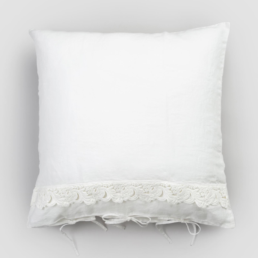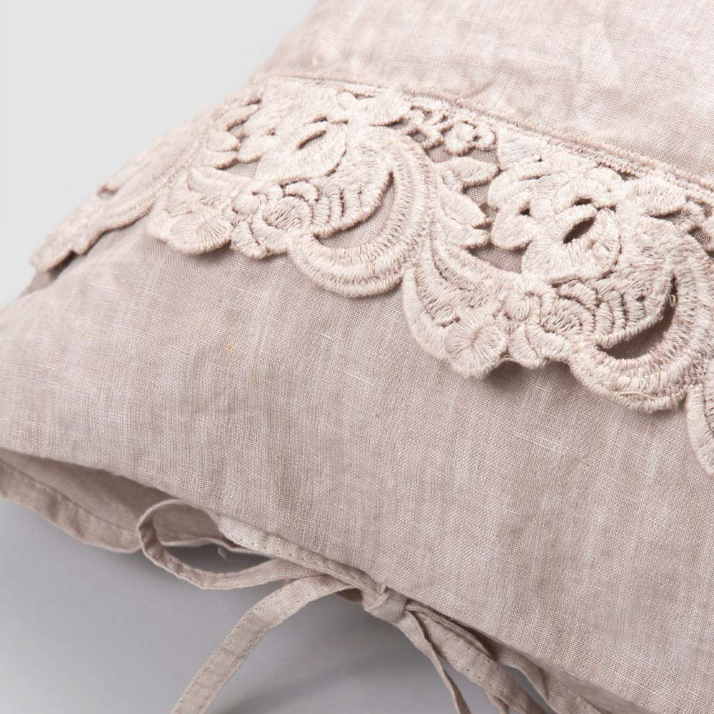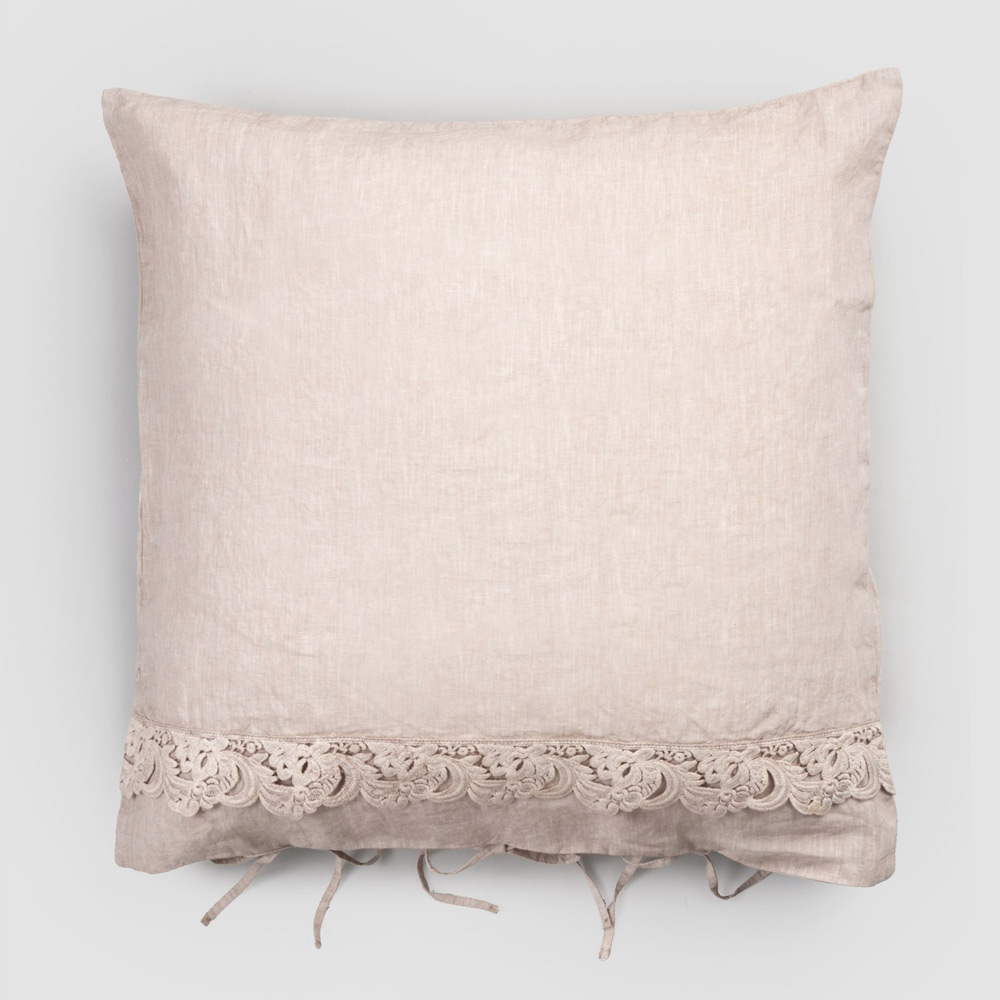 Taie d'oreiller carrée en pur lin avec dentelle harmonieuse et boutons à lacets, 2 couleurs made in Italy.
