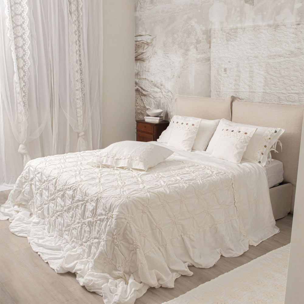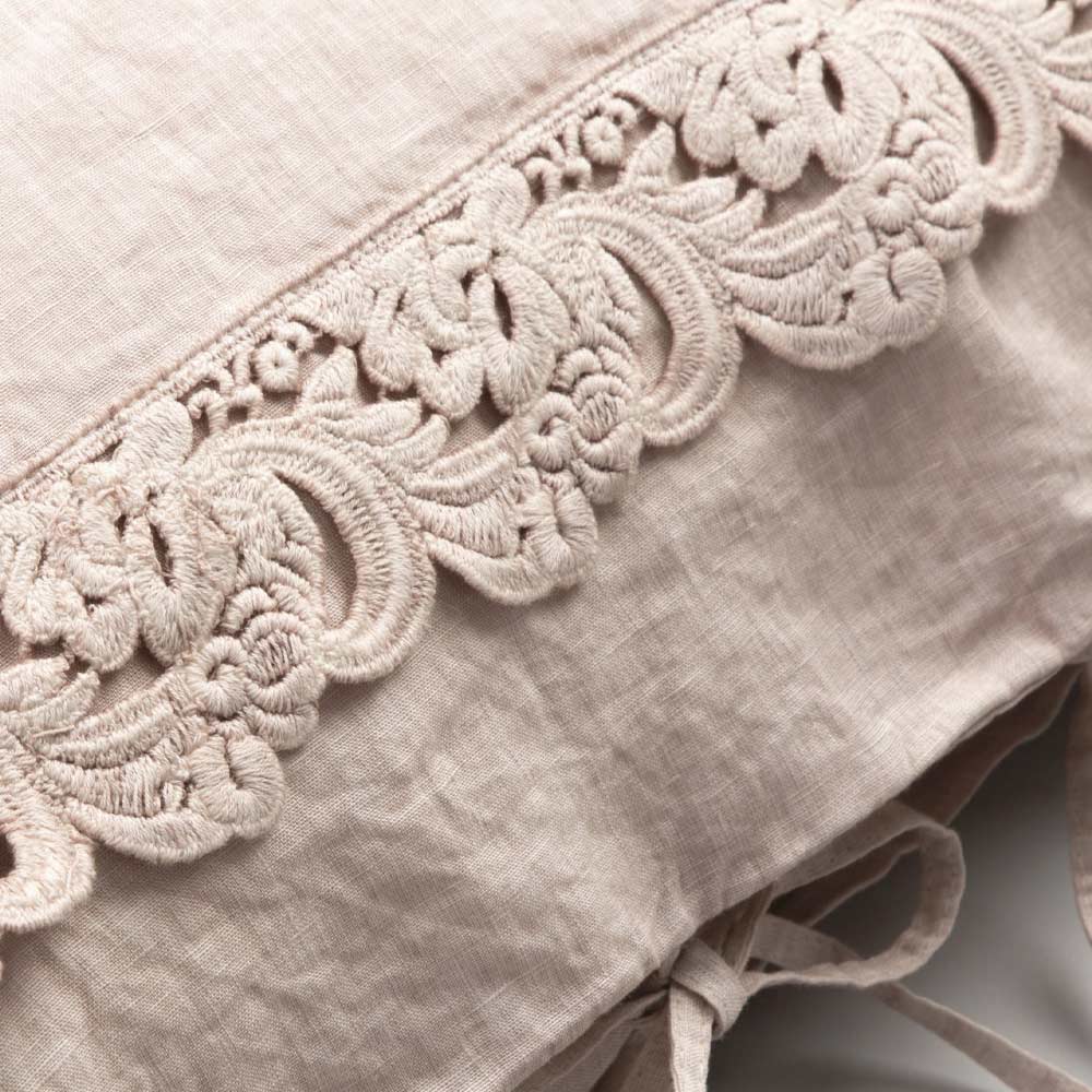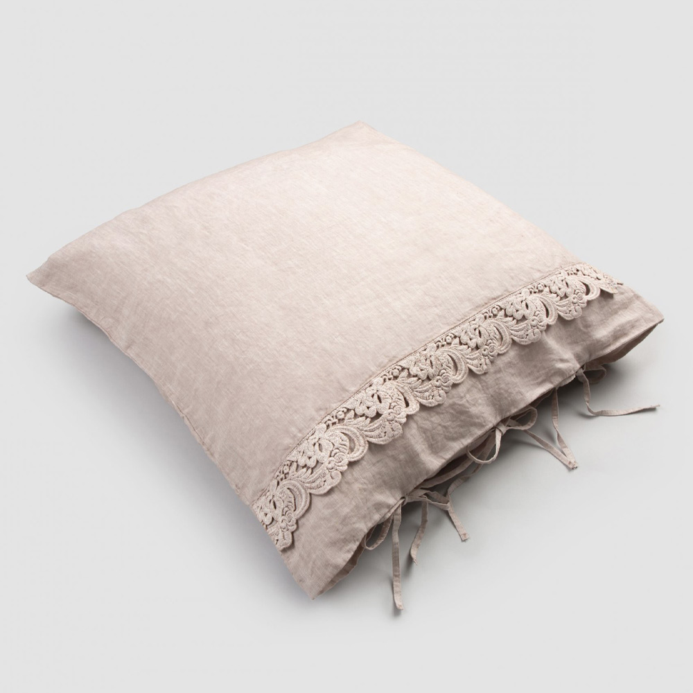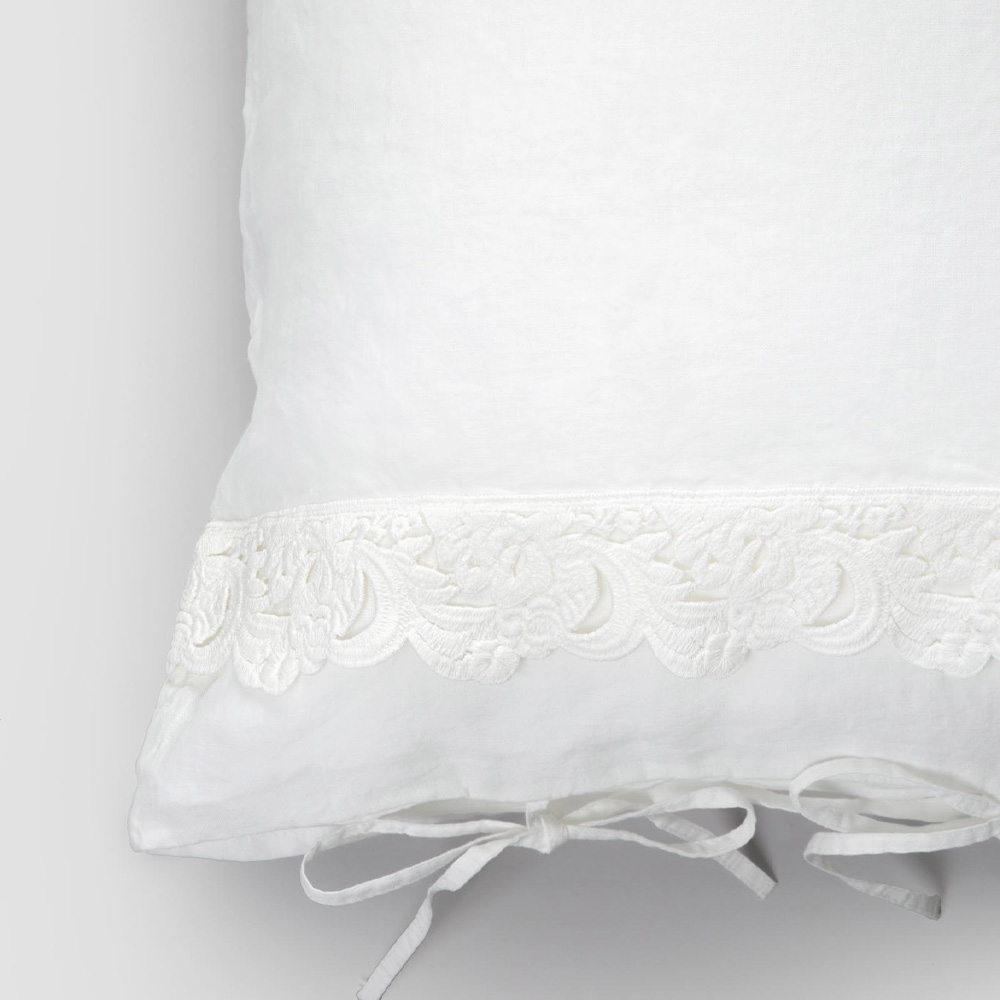 Taie d'oreiller carrée en pur lin avec dentelle harmonieuse et boutons à lacets, 2 couleurs made in Italy.