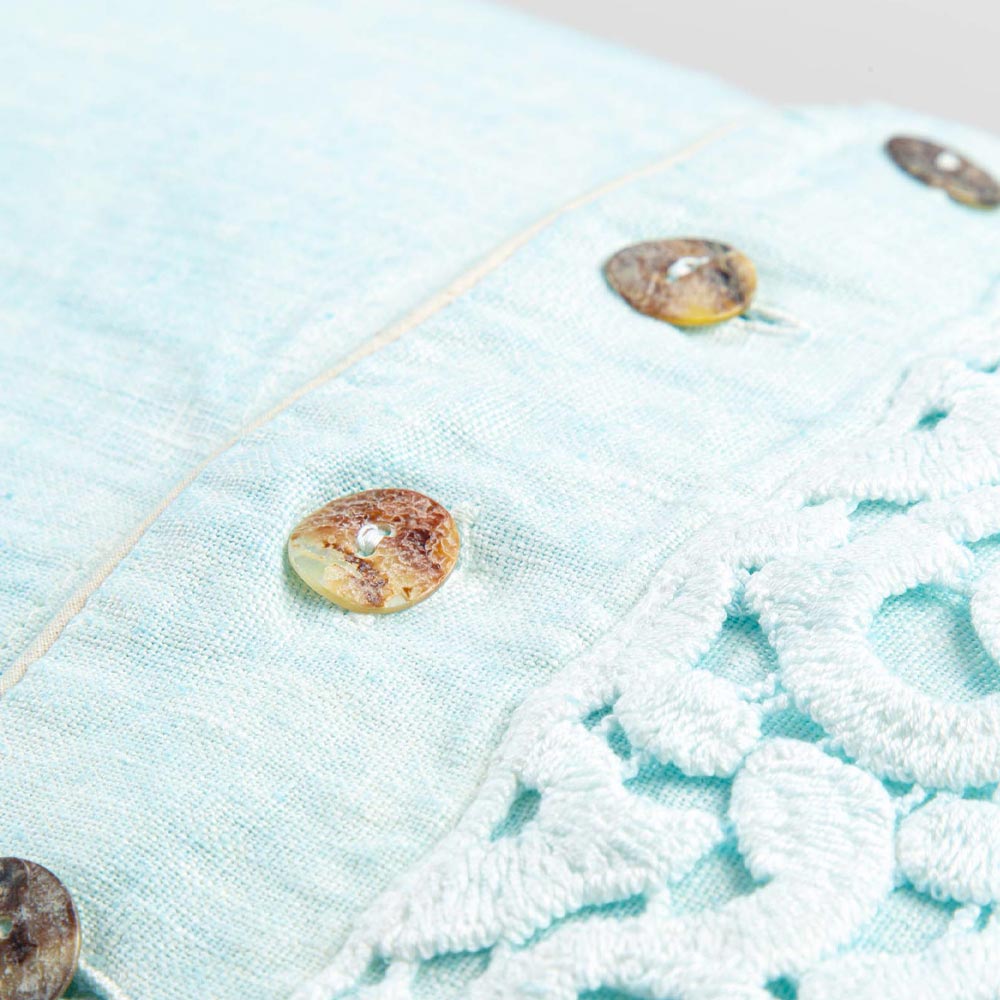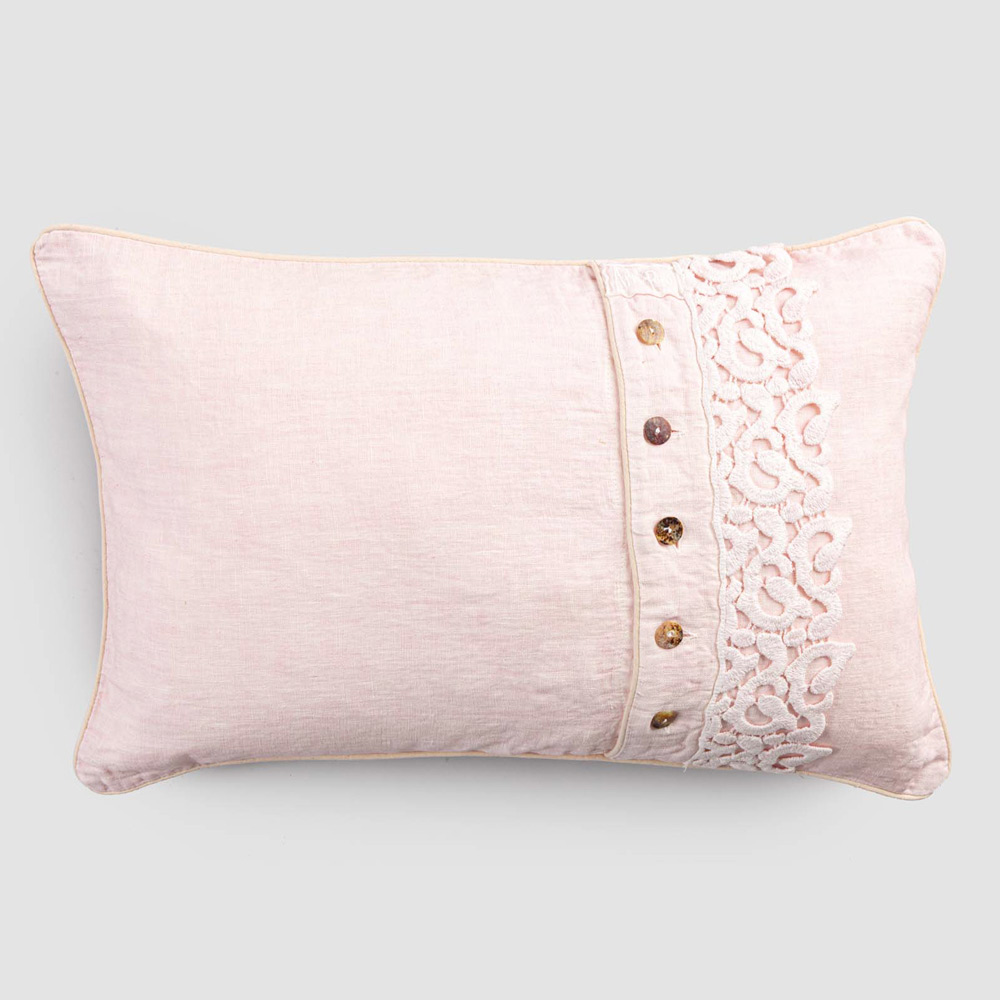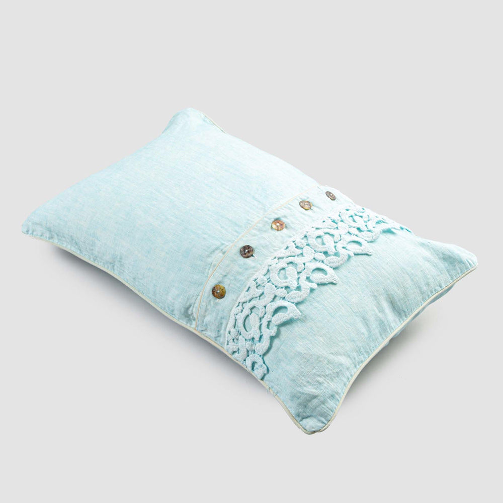 Taie d'oreiller en lin coloré avec dentelle poème, boutons et passepoil de luxe fabriqué en Italie.