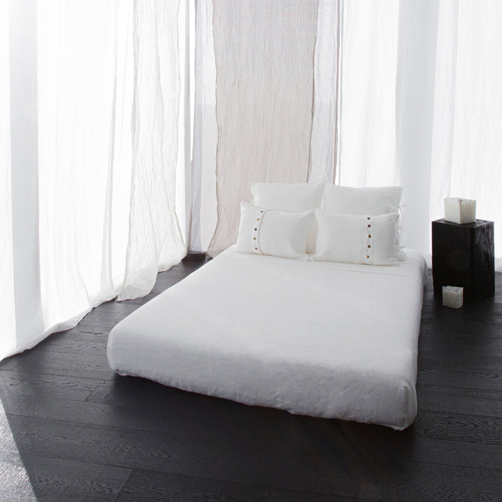 de lin de haute qualité et rendue douce au toucher grâce à des traitements spéciaux qui améliorent son aspect naturel. C'est un tissu idéal pour le lit car il est