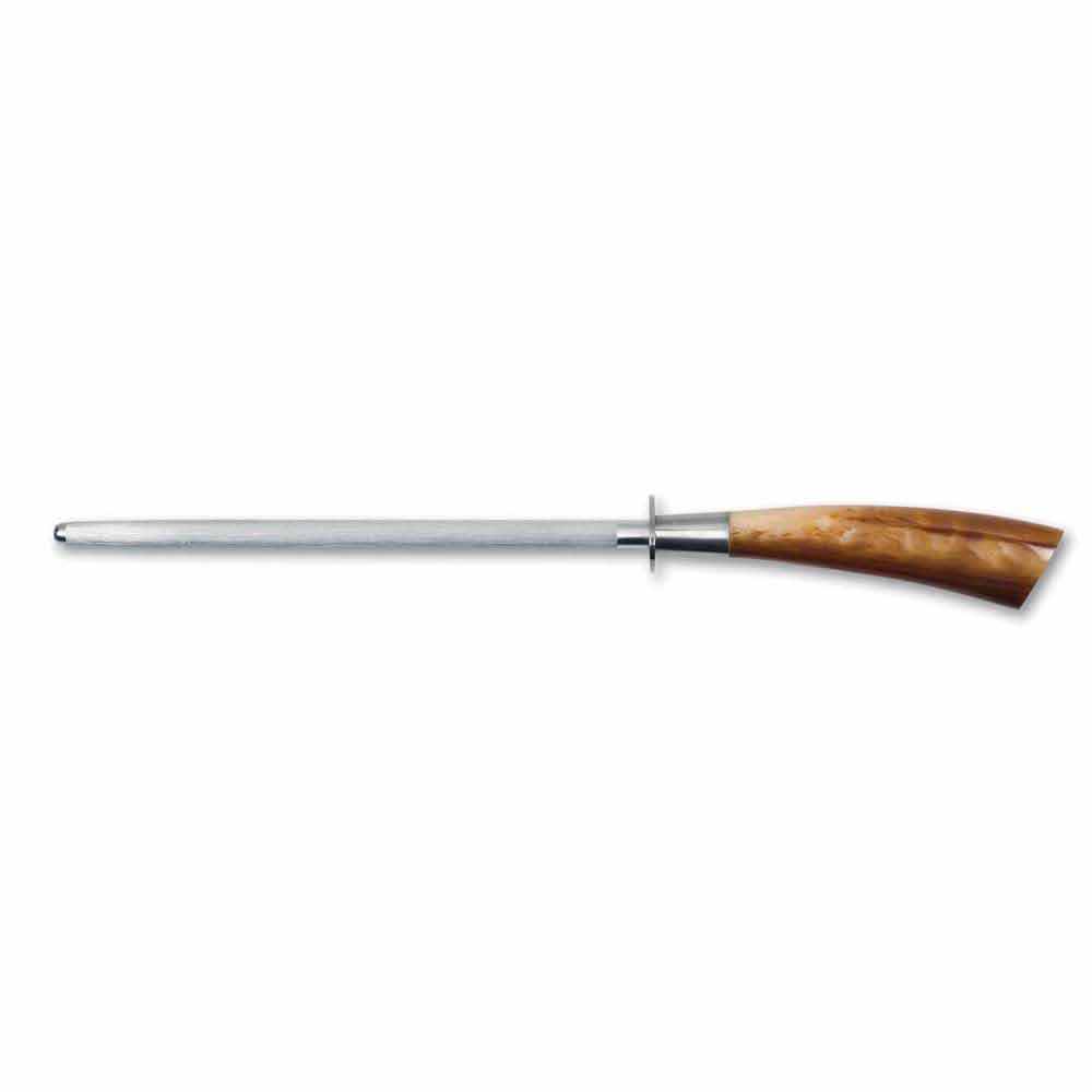 Affûteur : indispensable pour toujours garder vos couteaux affûtés efficacement. Manche forgé et noyau en acier chromé qui garantissent une dureté et une durabilité adéquates pour maintenir le tranchant de vos couteaux en acier inoxydable. Fabriqué avec un manche complet, c'est-à-dire que la lame a la soie cachée à l'intérieur du manche. Produit entièrement à la main en petites quantités et sans division du travail, ceux qui les démarrent les terminent.