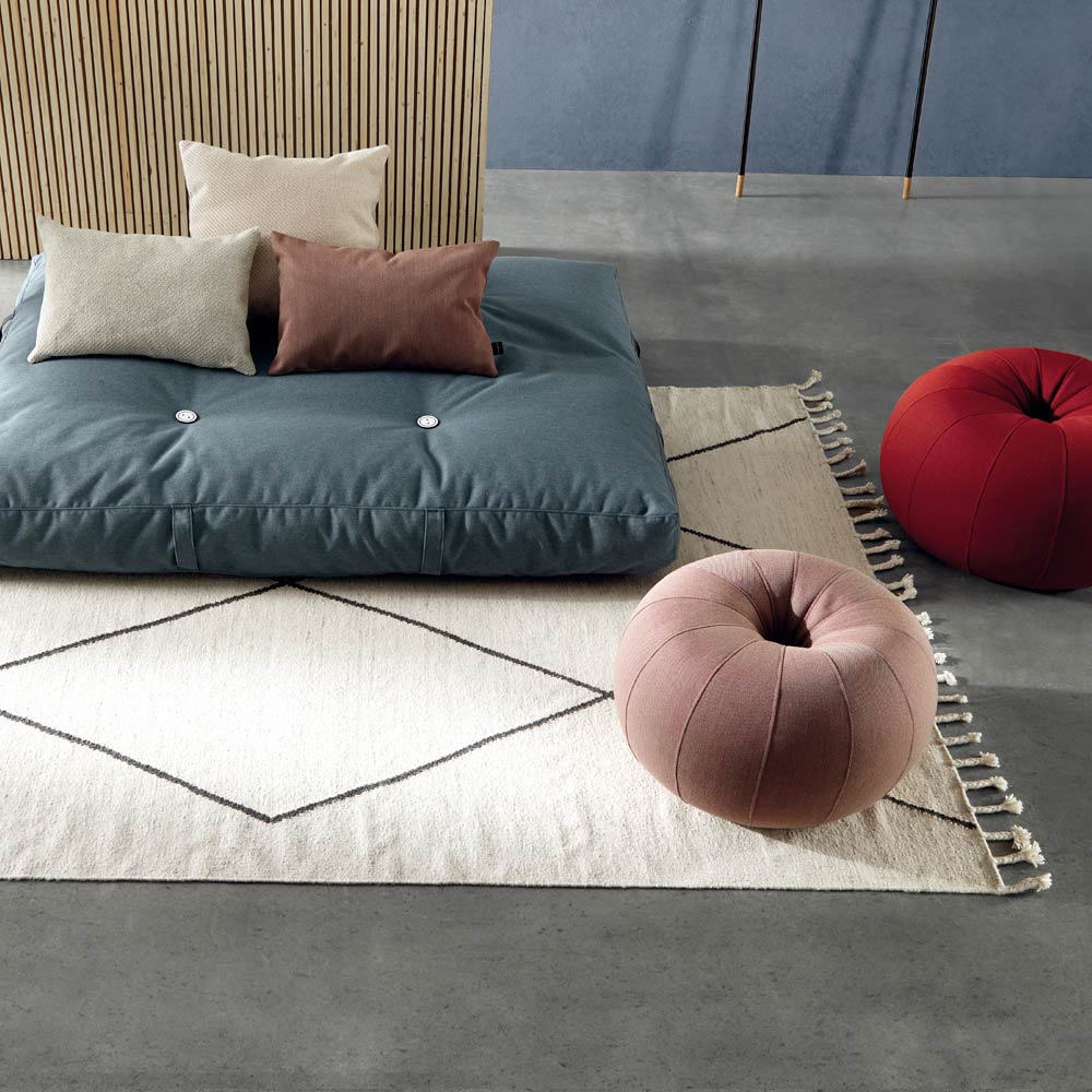 Entretien et nettoyage : il est recommandé d'utiliser un aspirateur dans les premières semaines pour éliminer les excès de poils typiques des nouveaux tapis. En cas de taches, utilisez du papier absorbant pour les sécher et, une fois la tache sèche, de l'eau et du savon neutre pour l'enlever. Évitez de frotter la surface car cela peut provoquer une érosion du tapis.