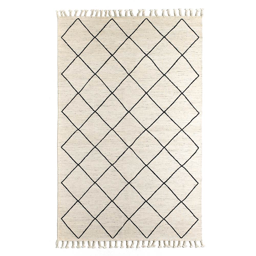 Tapis de salon design moderne avec motif géométrique en laine et coton.