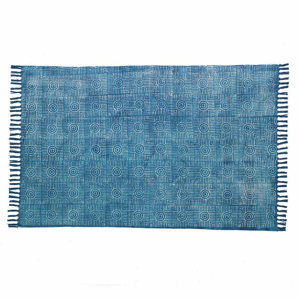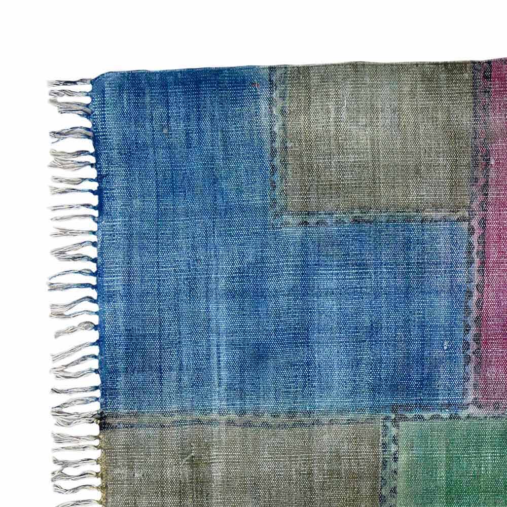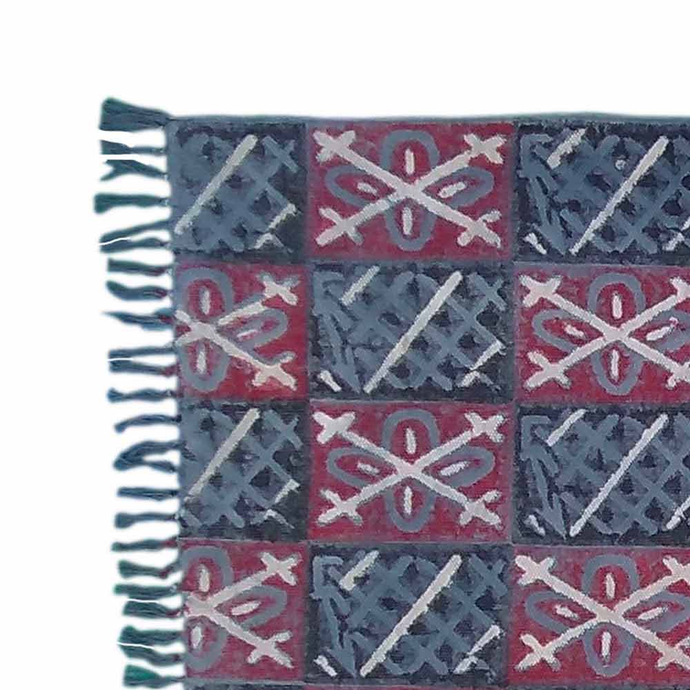Tapis coloré de design ethnique réalisé en tissu avec pompons.