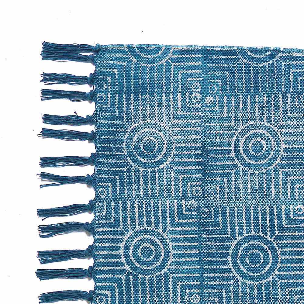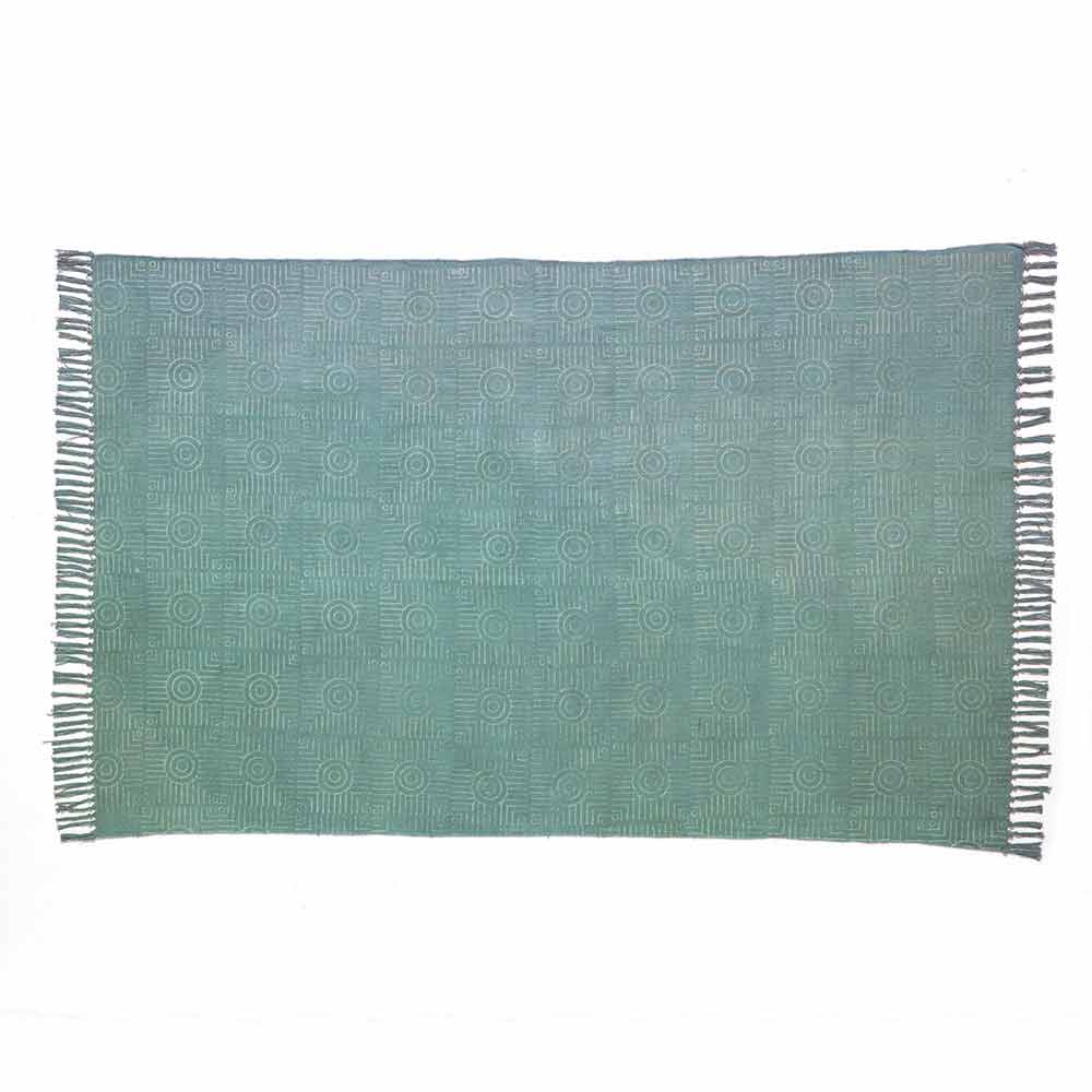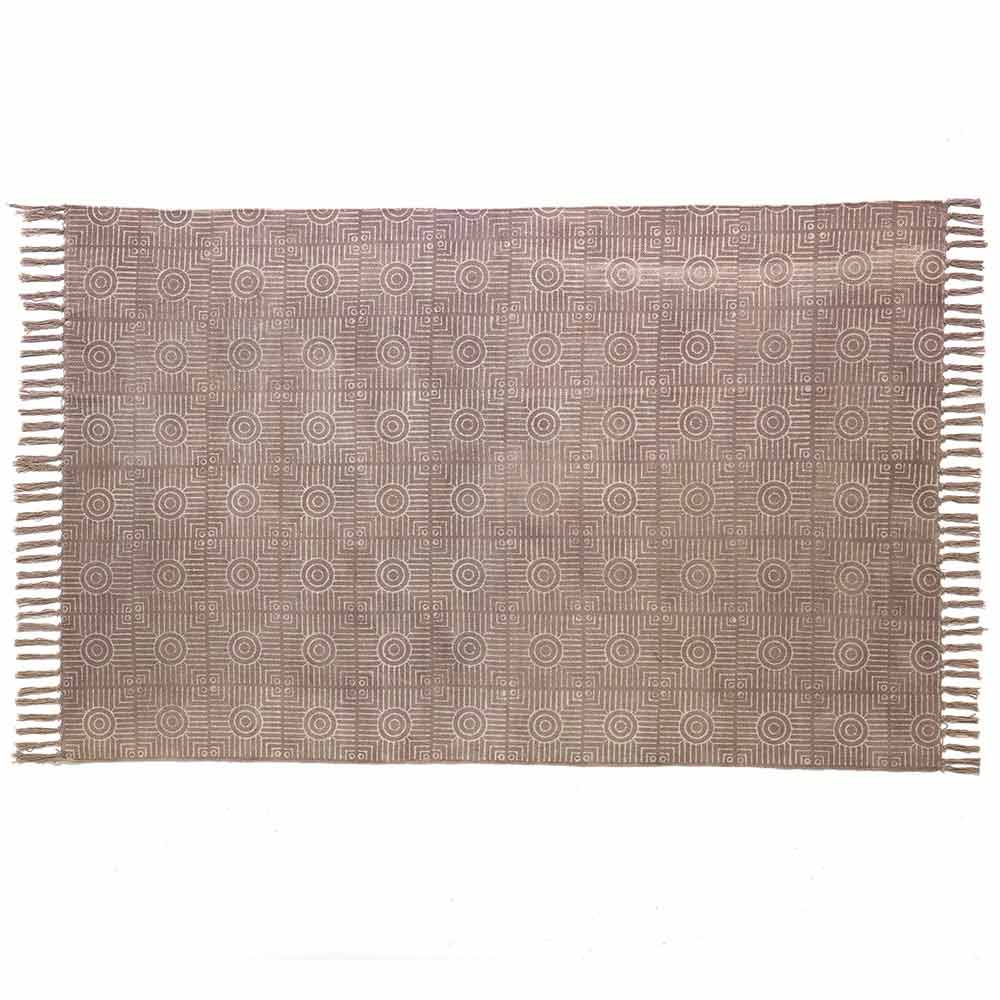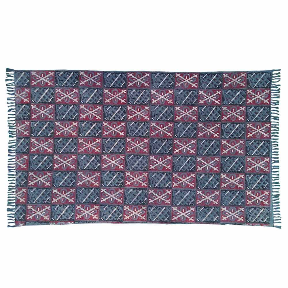 Tapis coloré de design ethnique réalisé en tissu avec pompons.