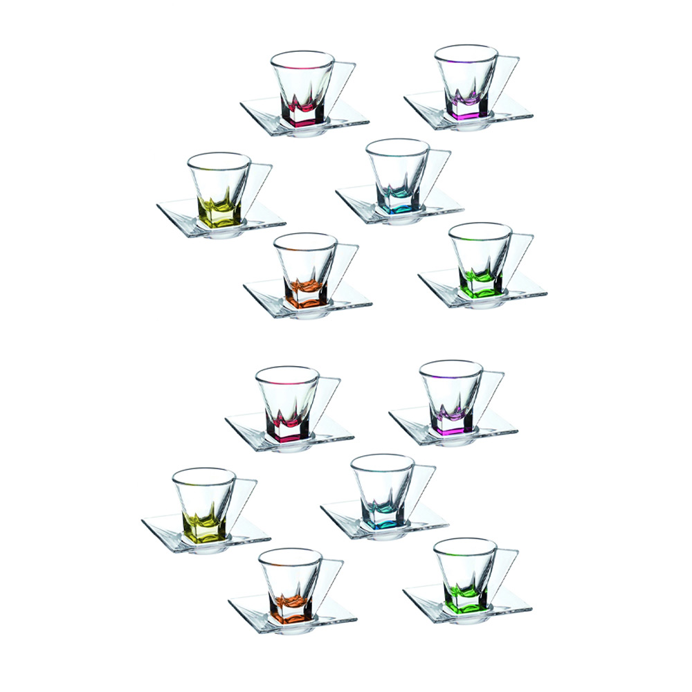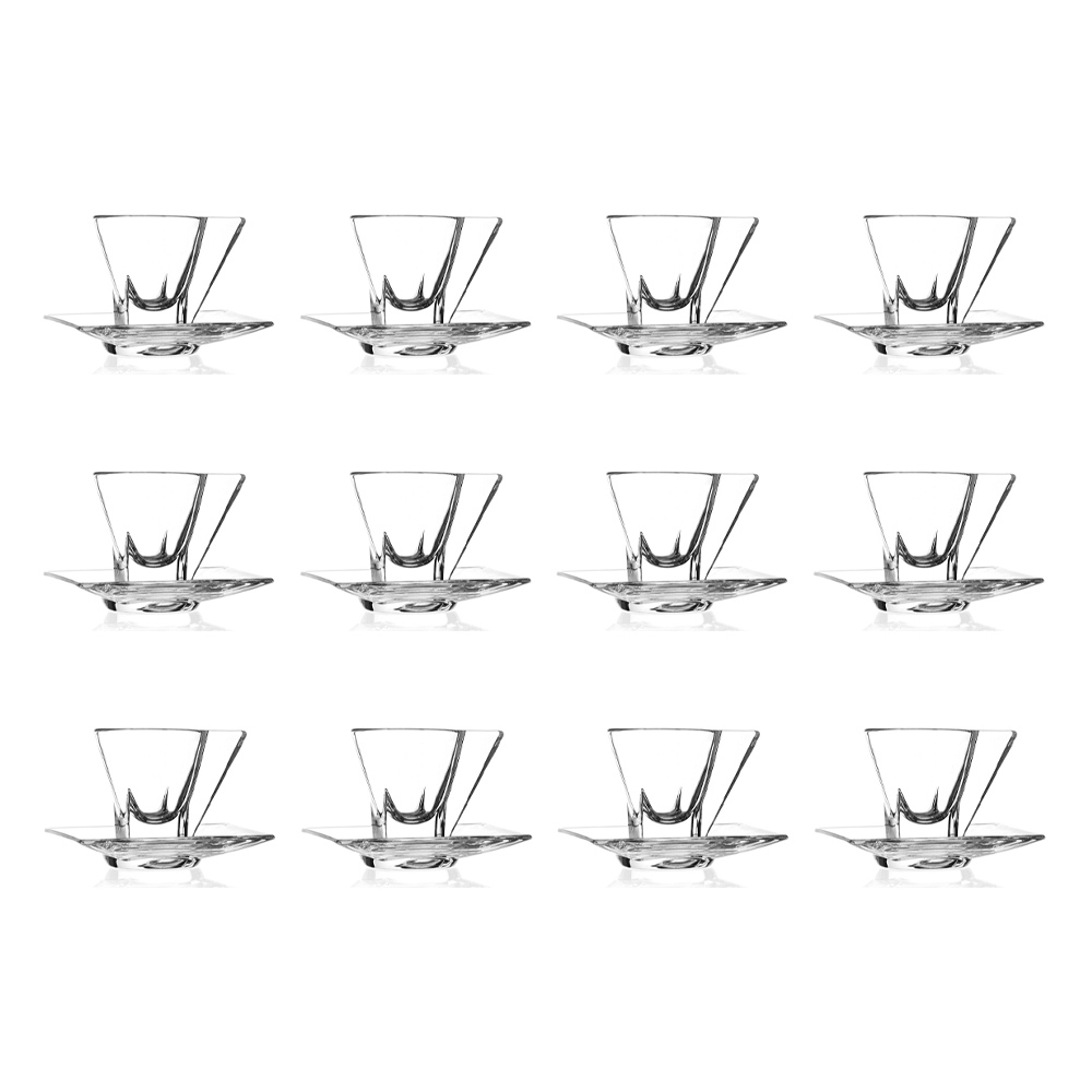 Ensemble de tasses à café en cristal écologique transparent ou coloré, 12 pièces fabriquées en Italie.