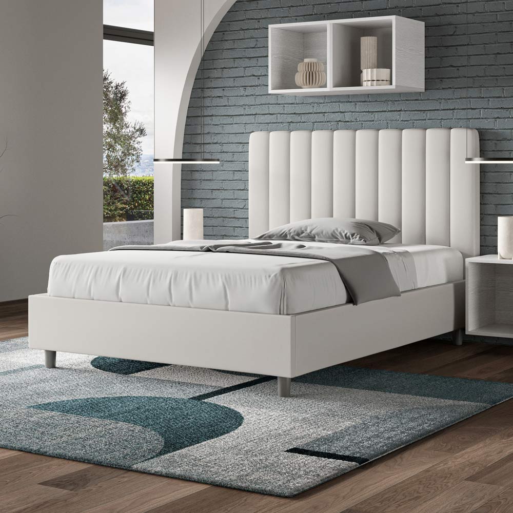 Lit Queen size, 120 x 200 cm, rembourré et recouvert de similicuir, fabriqué en Italie