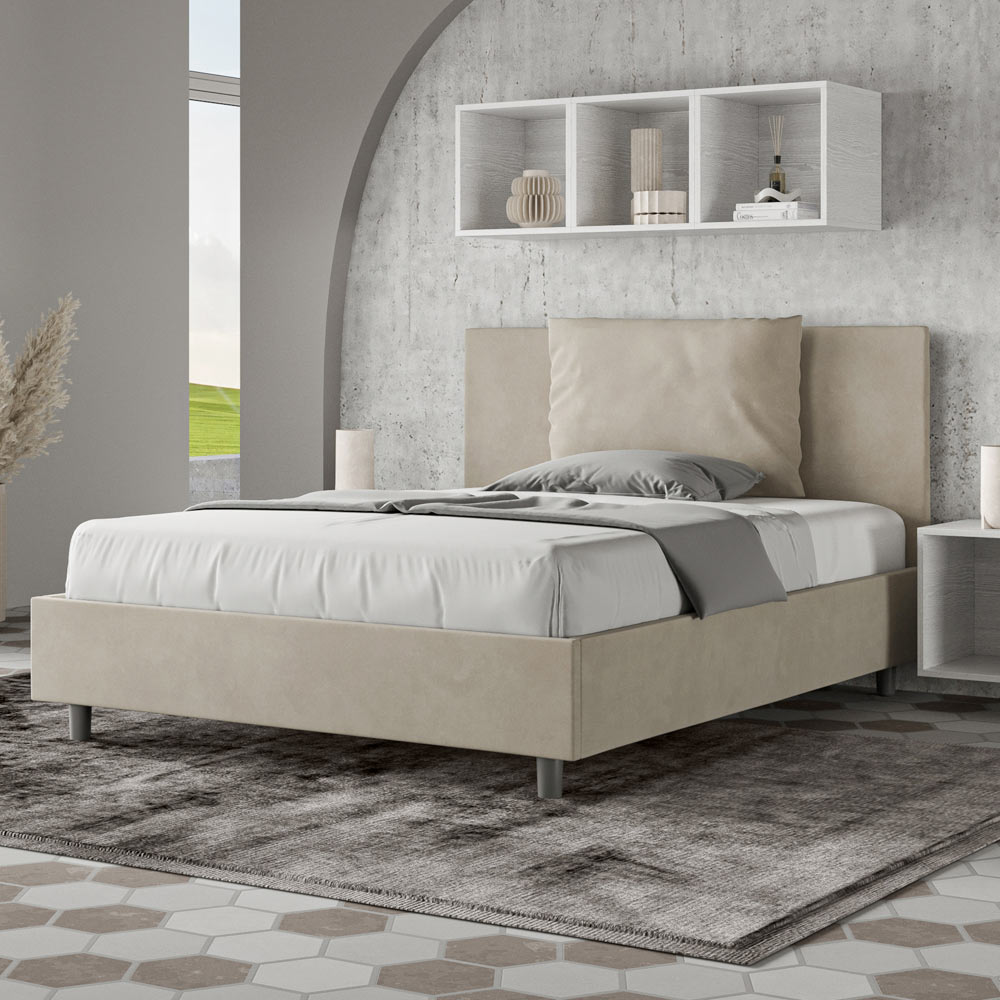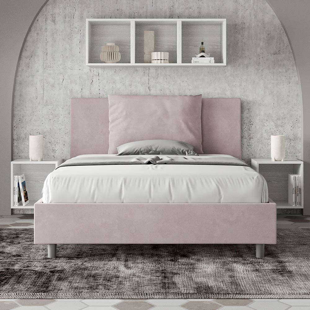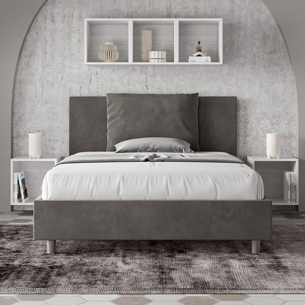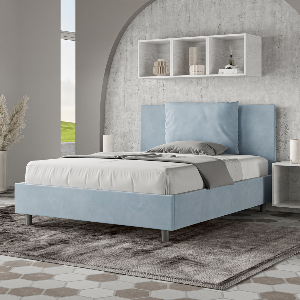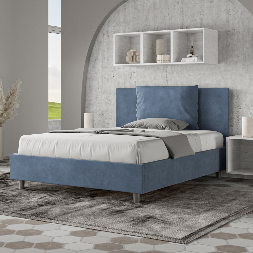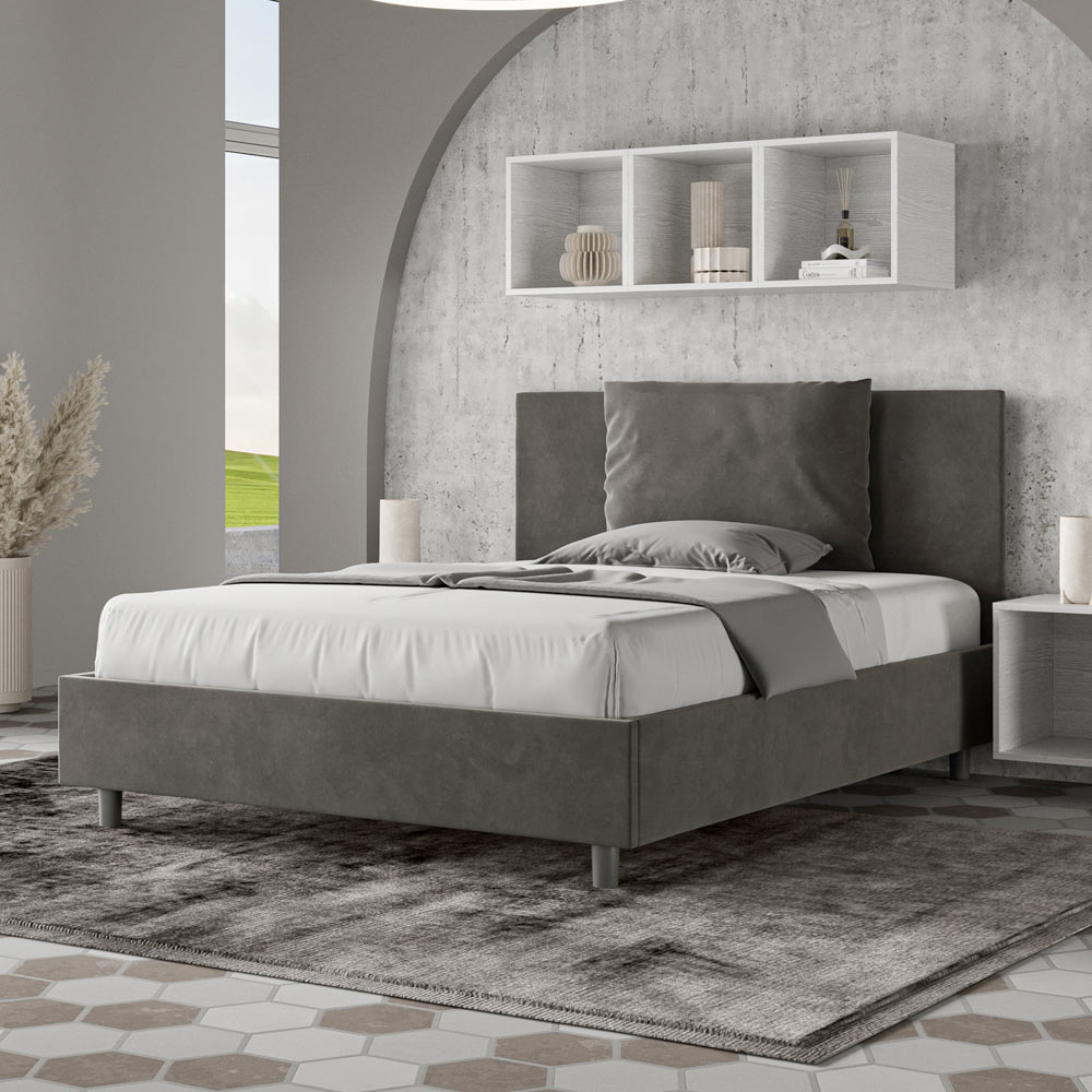 Lit français 140x200 cm rembourré et recouvert de microfibre, fabriqué en Italie