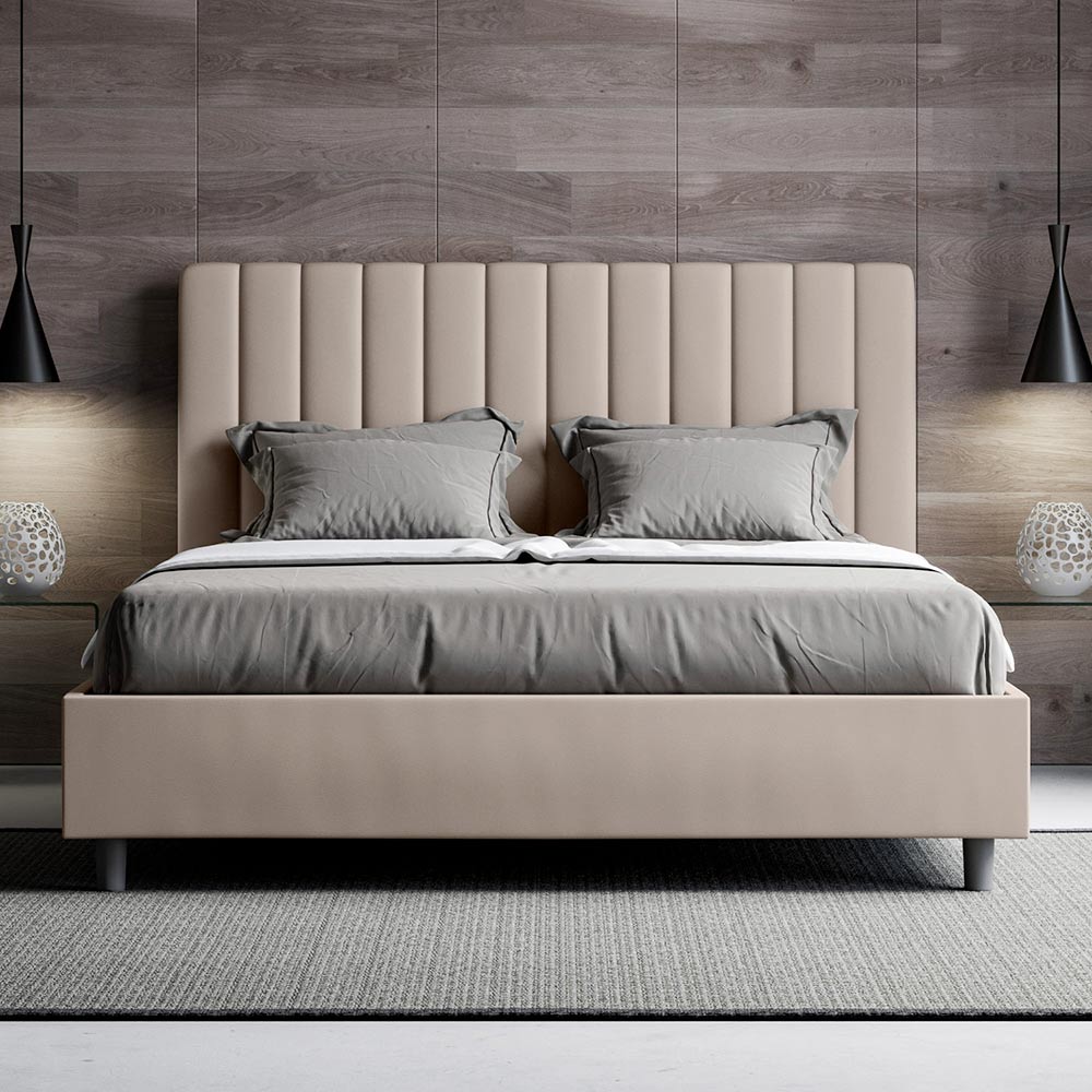 Lit double rembourré 160x200 cm recouvert de similicuir, fabriqué en Italie
