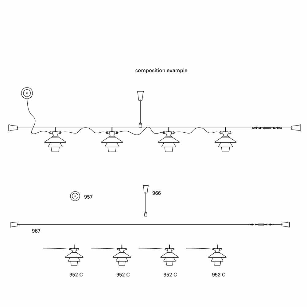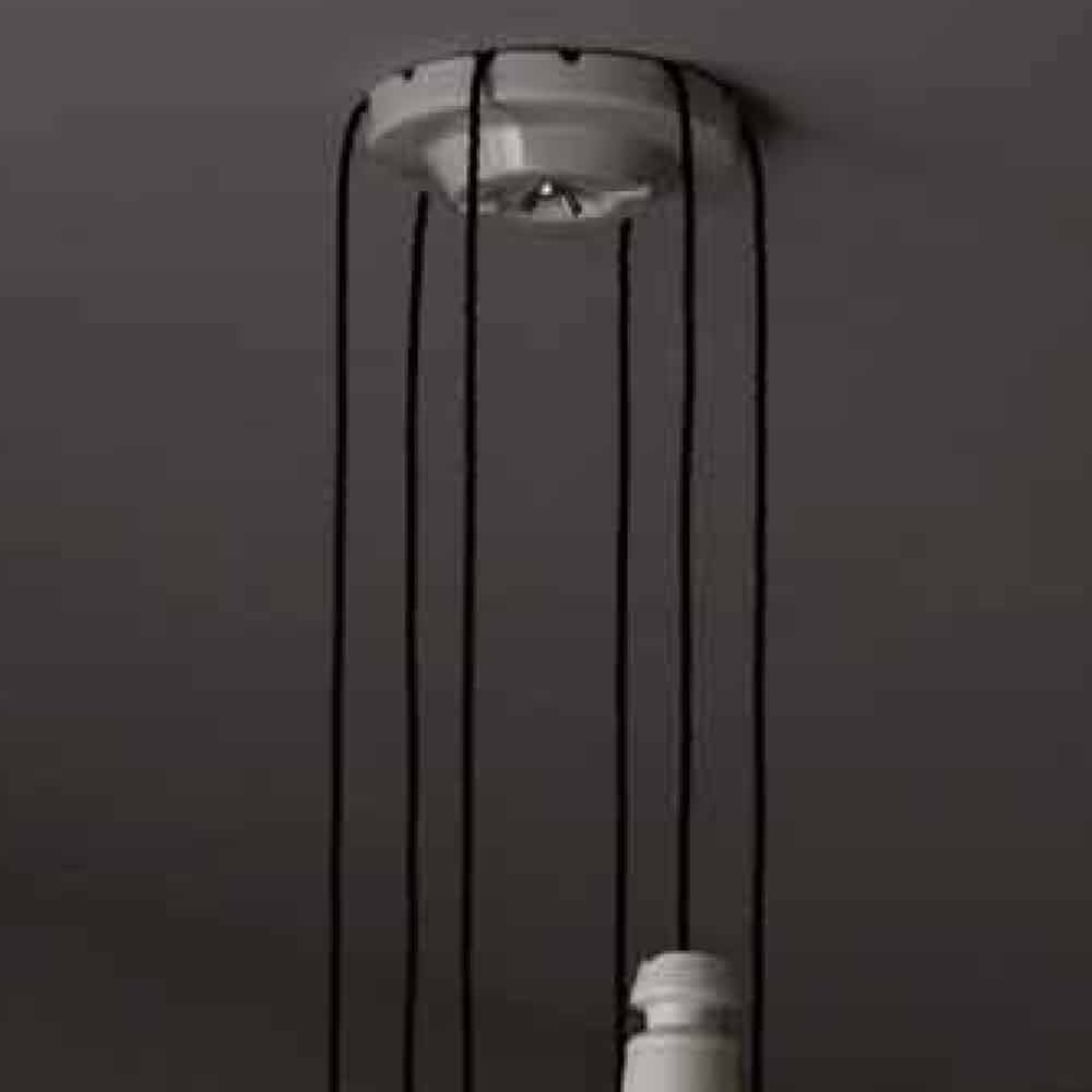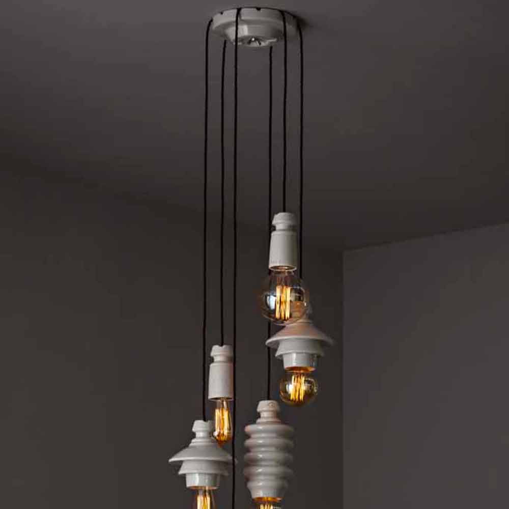 Battersea par Toscot grande rosace de plafond. Le nom de cette série est inspiré de la célèbre centrale thermoélectrique construite en 1933 à Battersea (Londres). Le design rappelle les anciens isolateurs électriques fabriqués entre les XIXe et XXe siècles. Malgré la référence Vintage, les lignes de ces lampes restent actuelles et peuvent s'insérer dans divers environnements. Grâce à la rosace Battersea, il est possible de combiner différents types de lampes de la série Battersea (art. 951, 954-22, 952) en créant d'intéressants jeux de lumière. Dimensions : Ø20, H 55 cm
