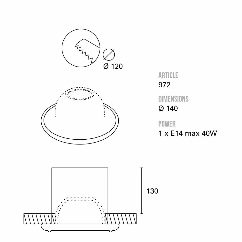 Lampe encastrée Battersea par Toscot . Un spot encastré au style unique et sans précédent. Un design soigné dans les moindres détails, qui vous permettra d'illuminer vos pièces avec originalité. Attention à l'esthétique, mais aussi à la fonctionnalité et à la qualité. Battersea est en effet fabriqué à la main par des artisans qualifiés avec des matériaux de qualité. Vous pouvez personnaliser le spot Battersea en choisissant parmi les couleurs suivantes : noir mat et huître. Indiquez la couleur souhaitée dans la case appropriée à côté de la photo du produit. Lumière directe Dimensions : Ø14, trou 12 cm Ampoules : 1x E14 max 40W - non incluses IP : 20