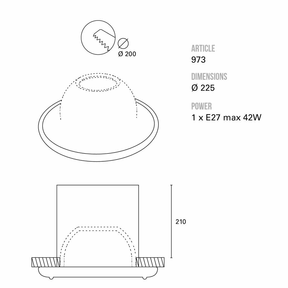 Lampe encastrée Battersea par Toscot . Un spot encastré au style unique et sans précédent. Un design soigné dans les moindres détails, qui vous permettra d'illuminer vos pièces avec originalité. Attention à l'esthétique, mais aussi à la fonctionnalité et à la qualité. Battersea est en effet fabriqué à la main par des artisans qualifiés avec des matériaux de qualité. Vous pouvez personnaliser le spot Battersea en choisissant parmi les couleurs suivantes : noir mat et huître. Indiquez la couleur souhaitée dans la case appropriée à côté de la photo du produit. Lumière directe Dimensions : Ø22.5, trou 20 cm Ampoules : 1x E14 max 42W - non incluses IP : 20
