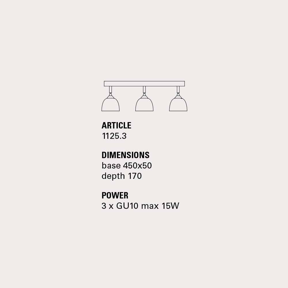 Dimensions : Socle L.45xH.5 EP.17 Ampoules : 3 x GU10 max 15W IP 20 - non fournies