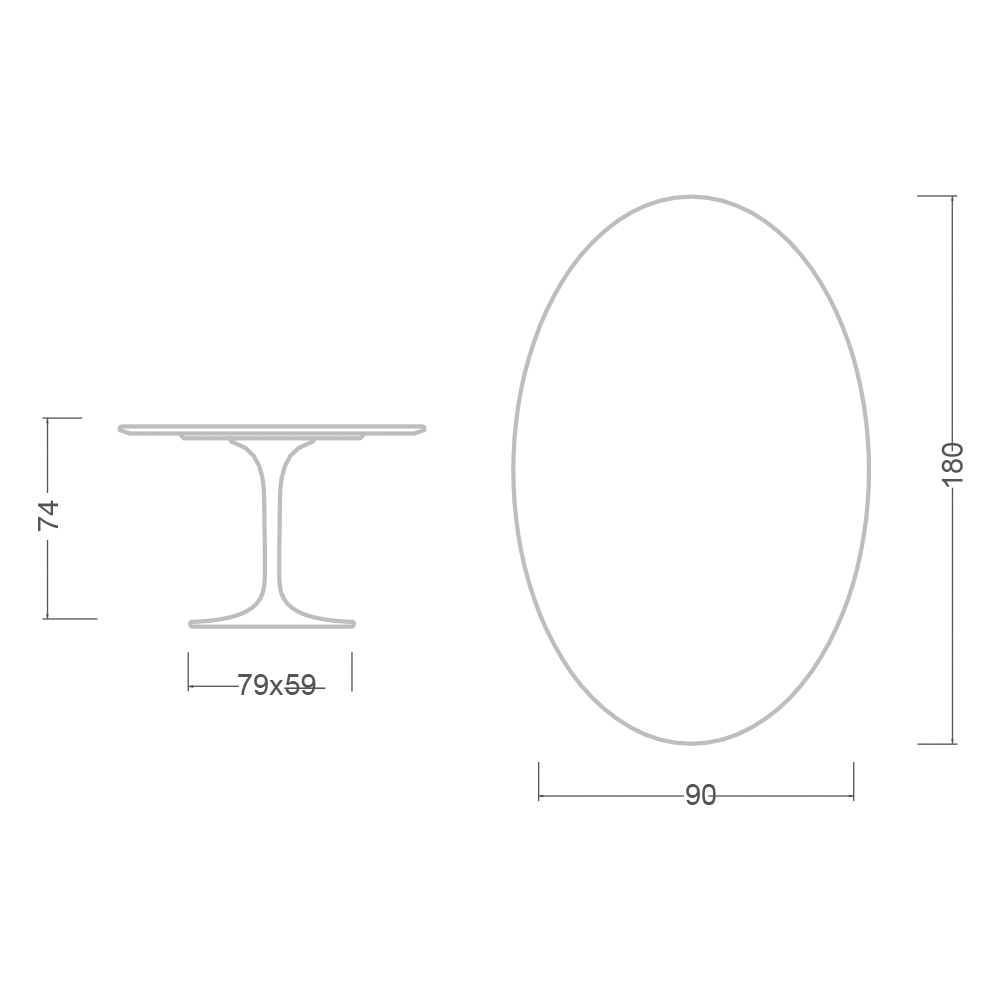 Plateau de table : 180 x 90 / Base ovale : 79 x 59 cm x H 73 cm