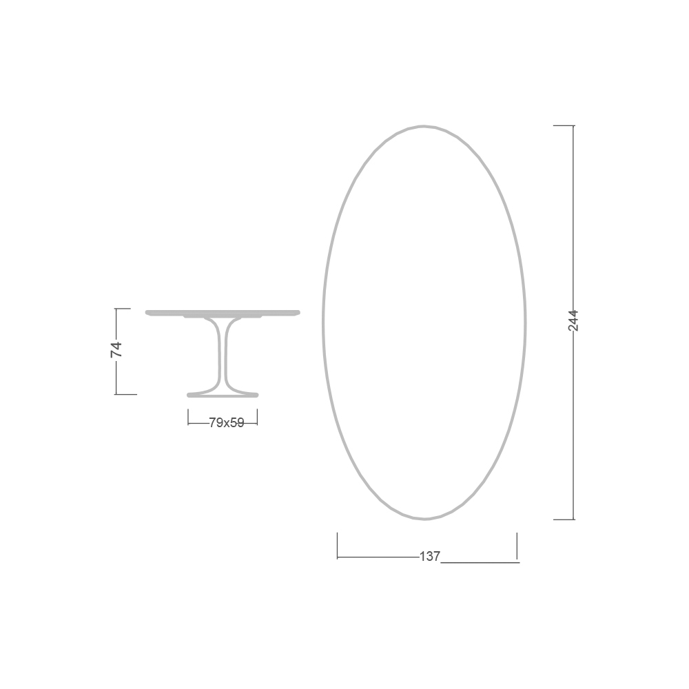 Plateau de table : 244 x 137 / Base ovale : 79 x 59 cm x H 73 cm