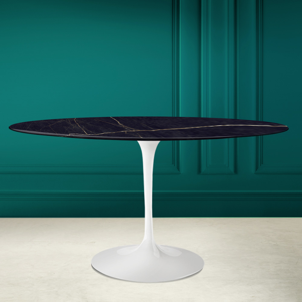 Table Tulipe Eero Saarinen H 74 Ovale en Céramique Noir Laurent Made in Italy - Ecarlate