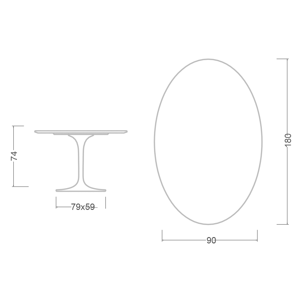 Plateau de table : 180 x 90 / Base ovale : 79 x 59 cm x H 73 cm