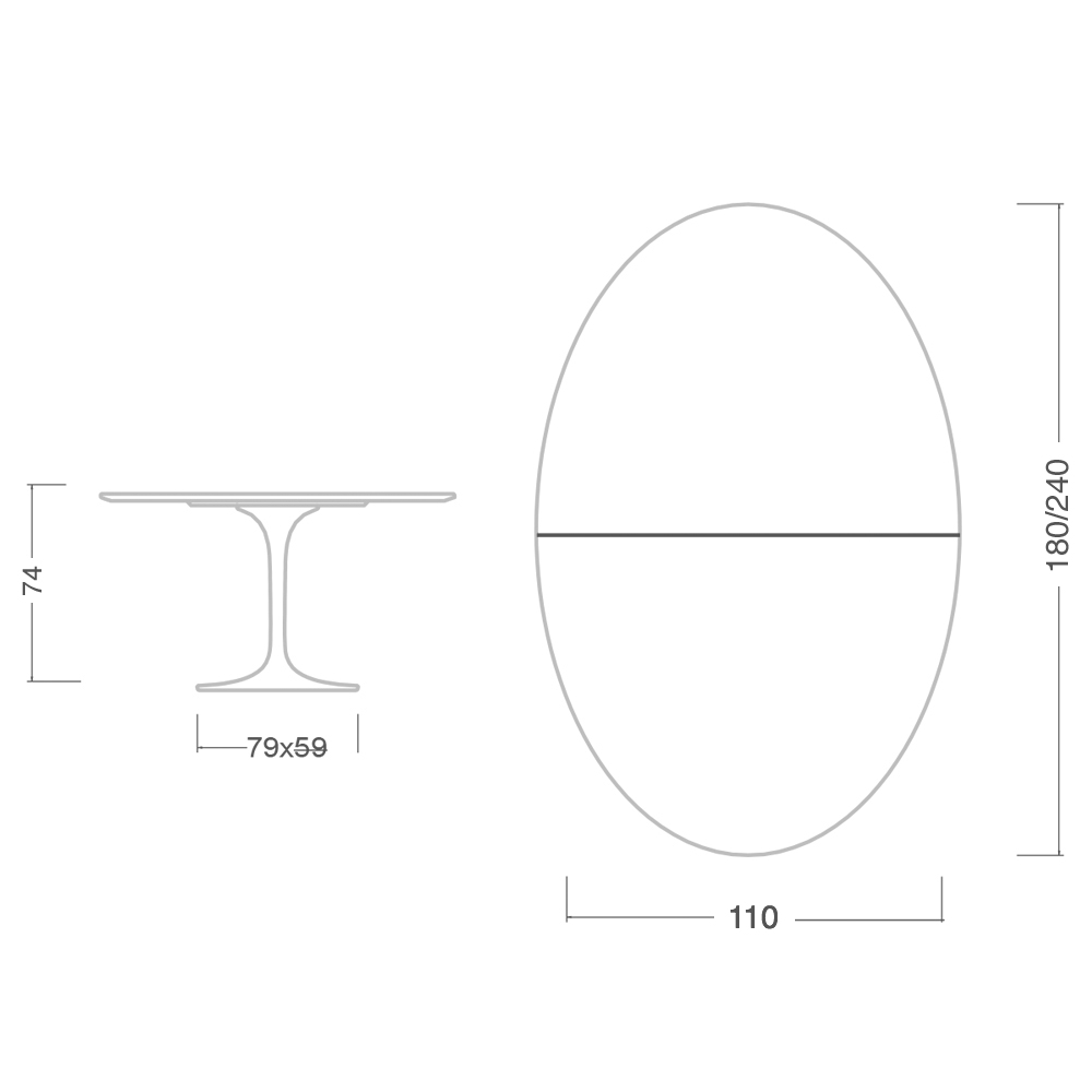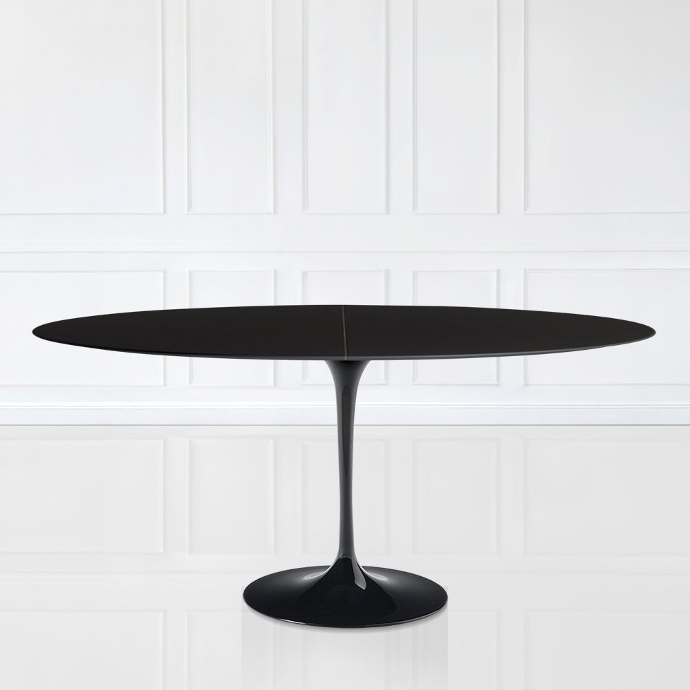 Table de salle à manger extensible jusqu'à 240 cm entièrement fabriquée en Italie avec plateau ovale en stratifié liquide noir et base en aluminium poli noir. La forme particulière ovale et les finitions simples et linéaires font de cet élément un accessoire d'ameublement parfait à insérer dans n'importe quel salon et cuisine pour le rendre moderne et original . Il est parfait pour recevoir des invités grâce à la possibilité de s'allonger et à la forme de la base qui permet d'insérer plusieurs chaises tout en restant élégant et innovant . Les matériaux utilisés pour la construction confèrent à cette table qualité et résistance même au fil du temps, ce qui en fait un élément parfait pour tous les événements et toutes les occasions d'utilisation.