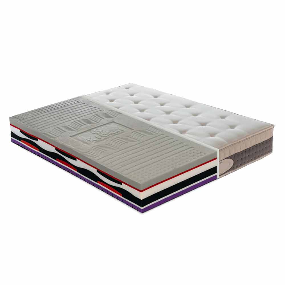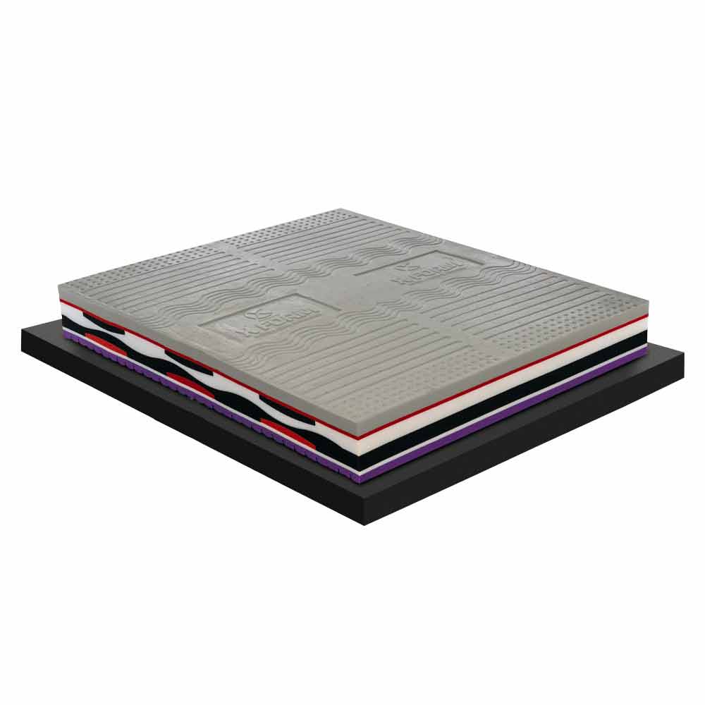 Feuille intérieure composée de 5 couches: - 5,0 cm Memory Xform densité de gris 65 kg / m3 du moule (mémoire viscoélastique à retour lent, à base d'eau moussée et avec ajout d'ions argent et carbone);