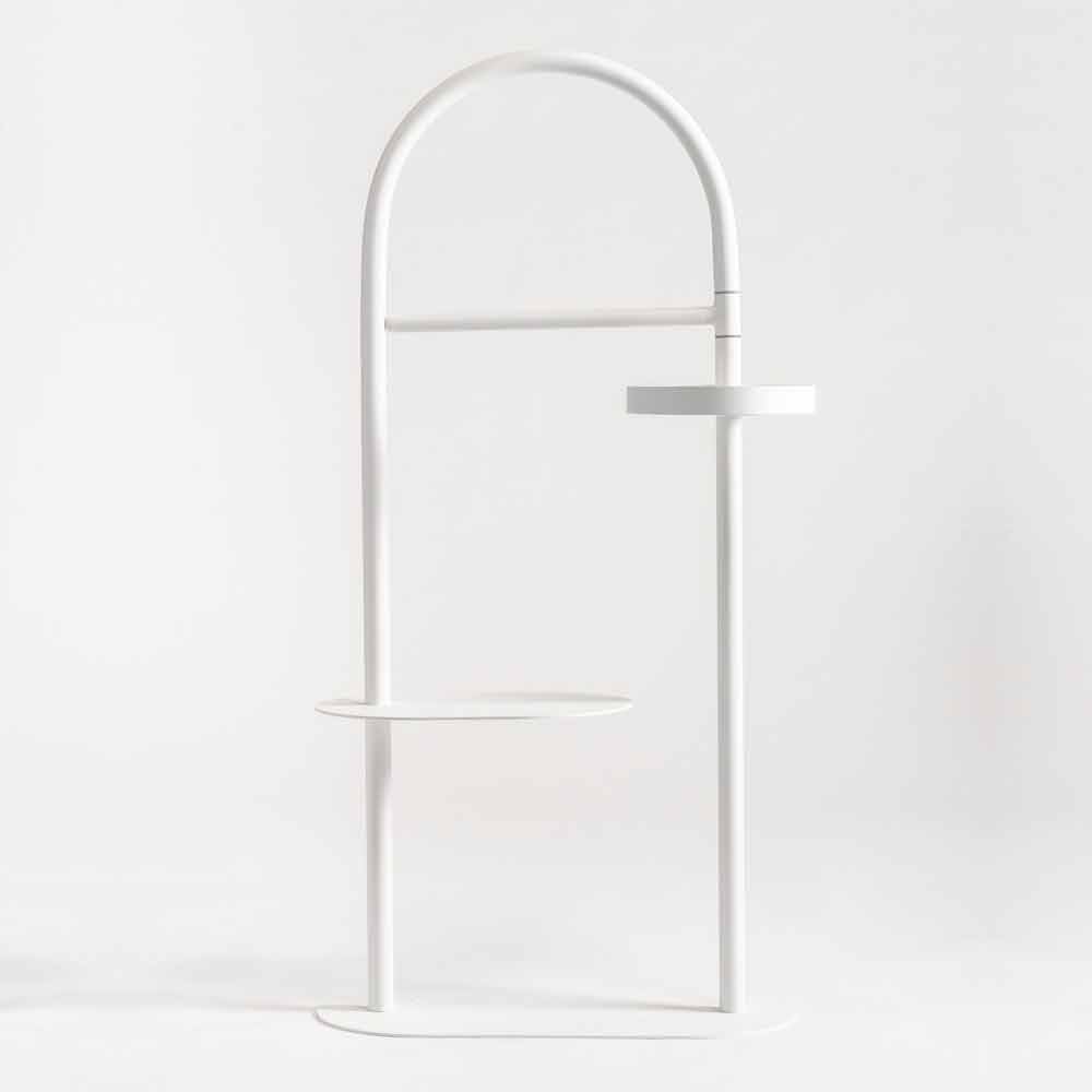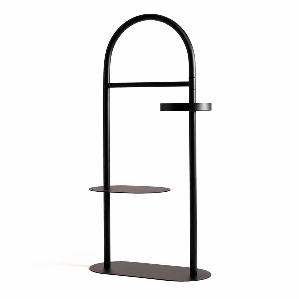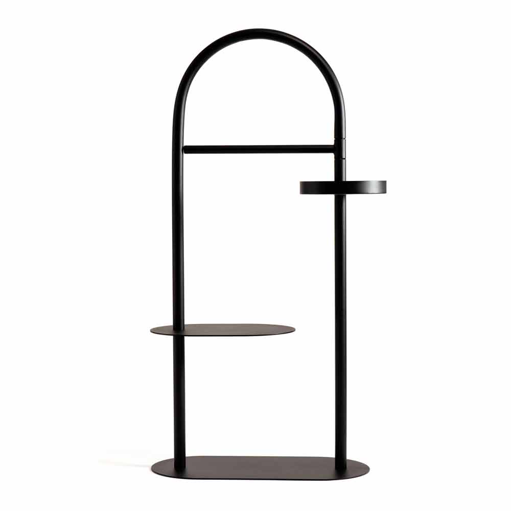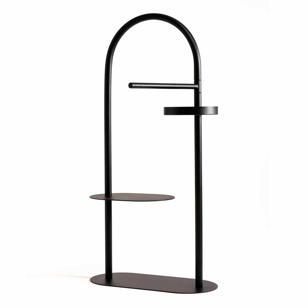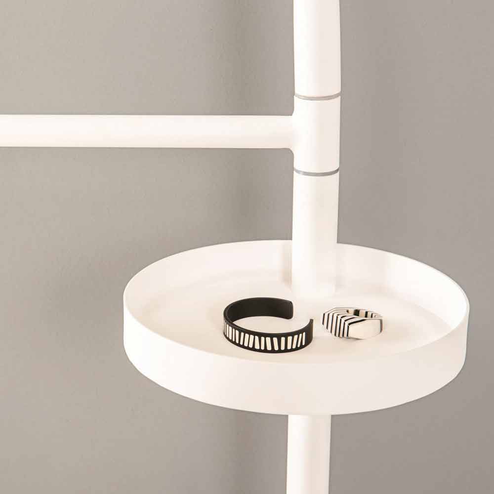 Le valet est un élément indispensable pour organiser les vêtements de votre chambre ou dressing et il est donc important de choisir le bon en tenant compte de vos besoins et du mobilier environnant. Ce produit est entièrement fabriqué en Italie et se caractérise par un design minimal mais percutant grâce à sa forme en arc semi-circulaire qui devient un bras pivotant pratique et fonctionnel. Sa structure est en acier peint RAL et dispose de deux étagères pratiques idéales pour placer des objets tels que des verres, des clés ou tout accessoire que vous souhaitez avoir sous la main.