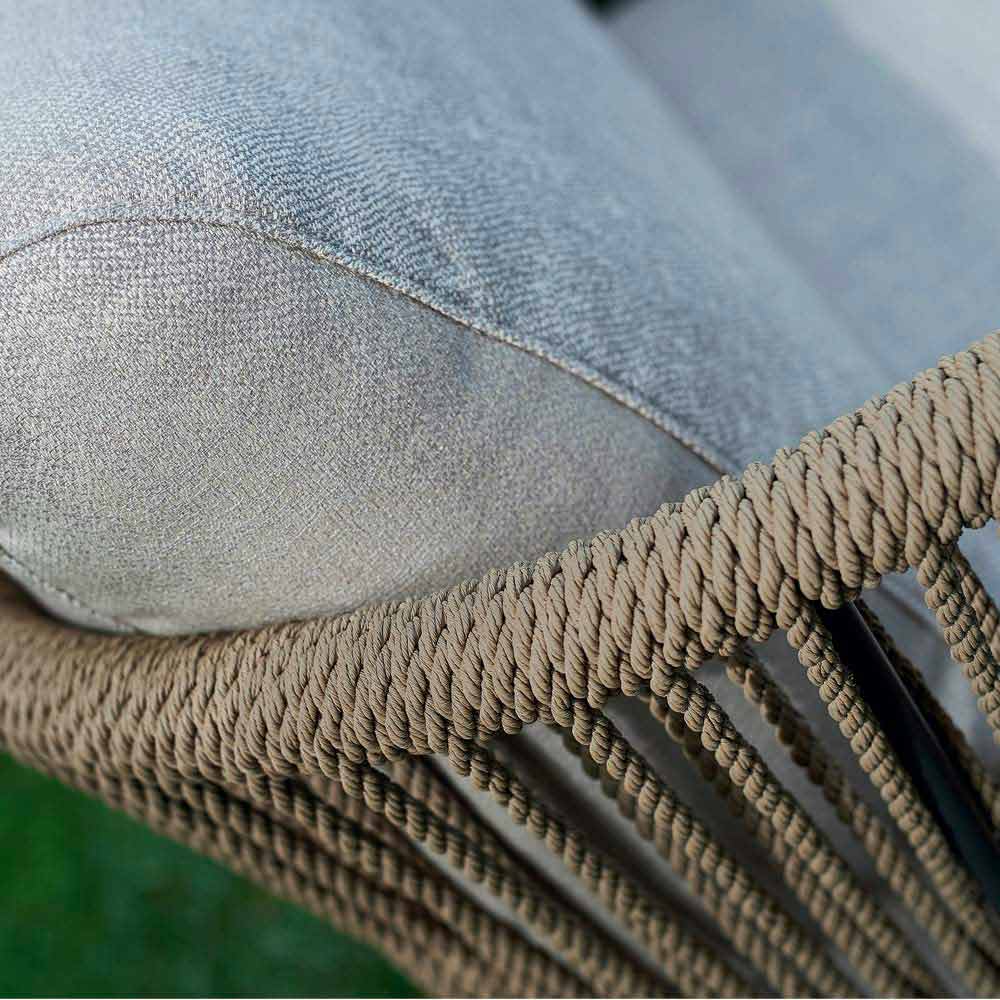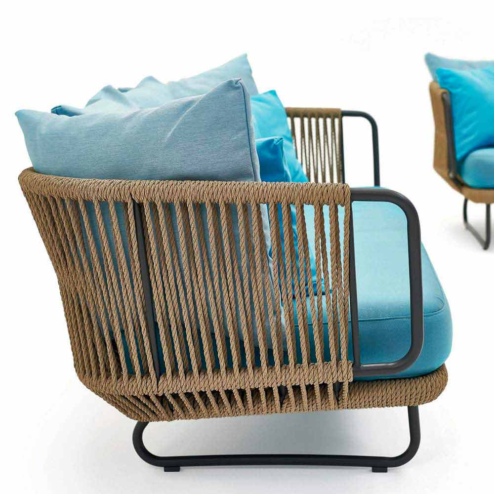 Babylon est une collection de canapés, fauteuils, chaise longues et pouf. Tous les articles de cette collections sont des modèles enregistrés et ils ont une structure en aluminium verni et corde en fibre synthétique.