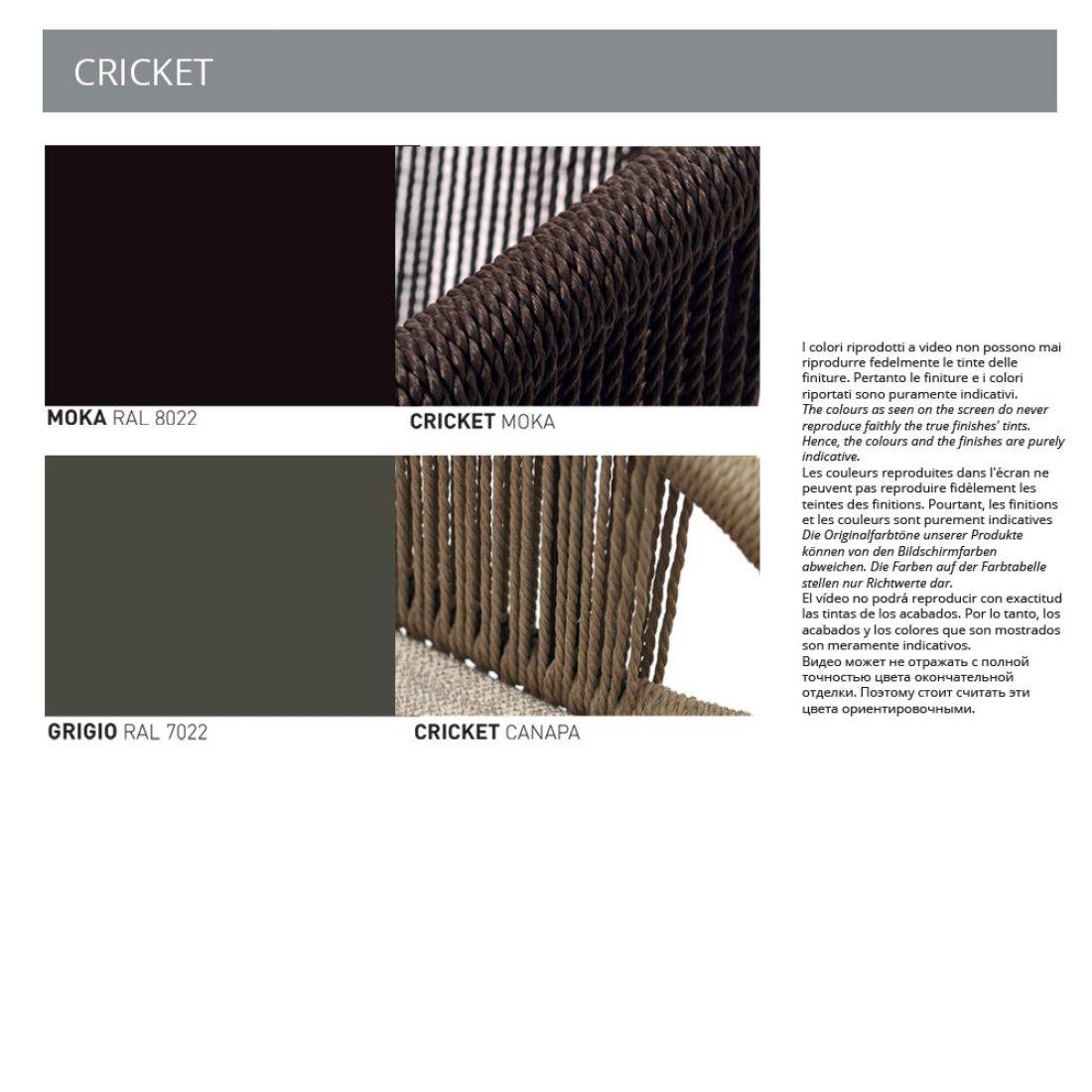 Ensemble de 2 chaises tressée à la main en fibre synthétique avec structure en aluminium verni. La chiase de jardin Cricket par Varaschin, grâce à son design polyvalent, peut être utilisée aussi bien à l'intérieur.
