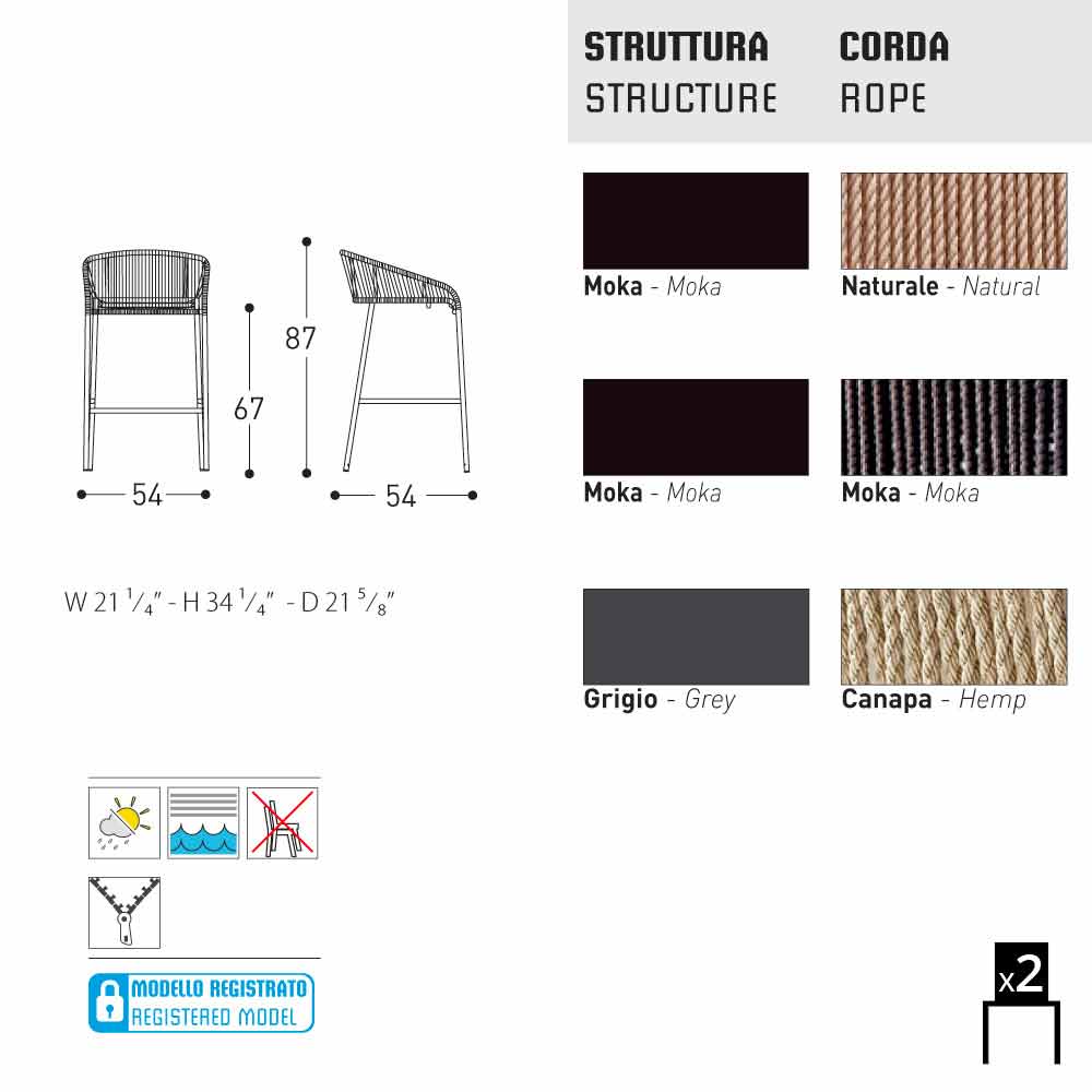 Ensemble de 2 tabourets de jardin tressés à la main en fibre synthétique avec structure en aluminium verni. Le tabouret Cricket par Varaschin, grâce à son design polyvalent, peut être utilisé aussi bien à l'extérieur qu'à l'intérieur.