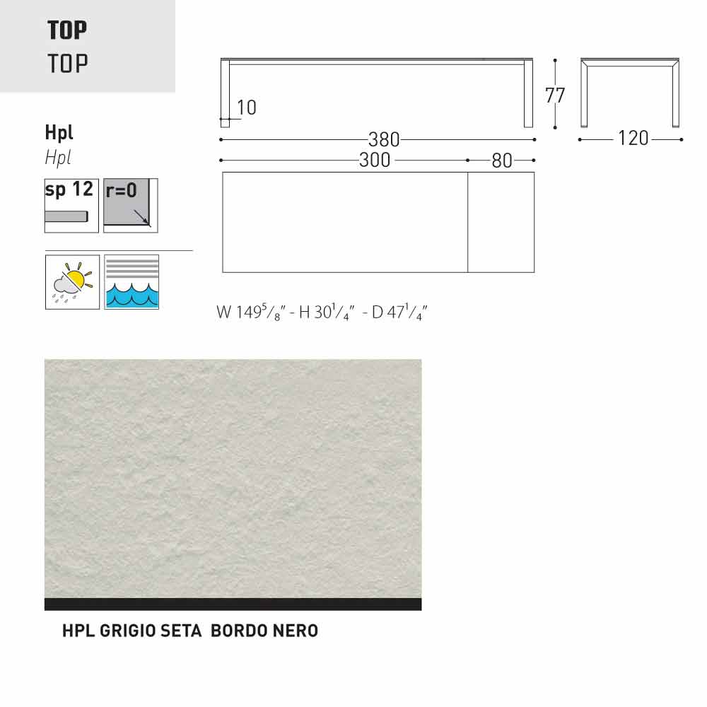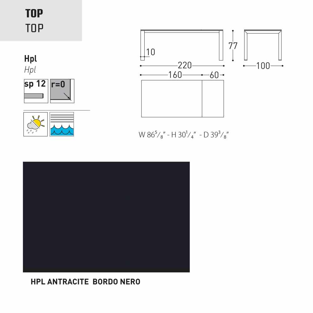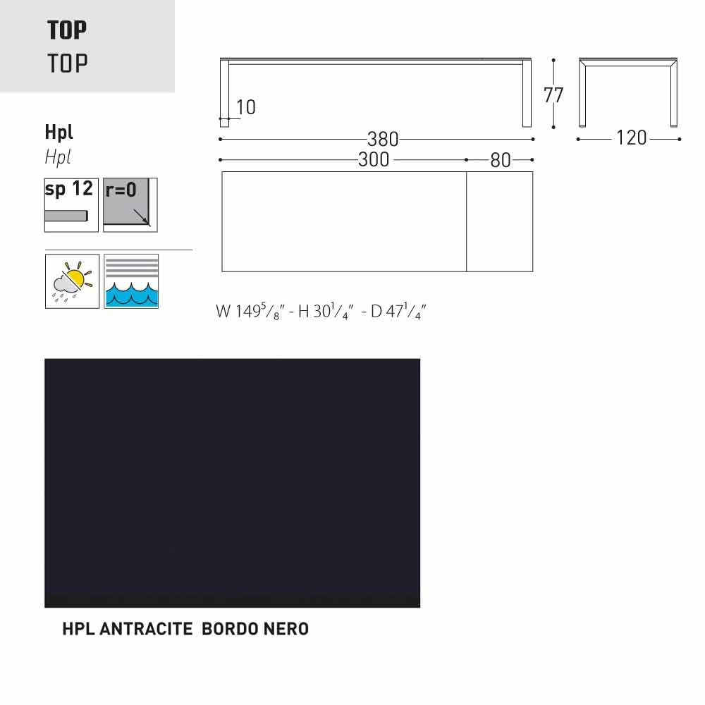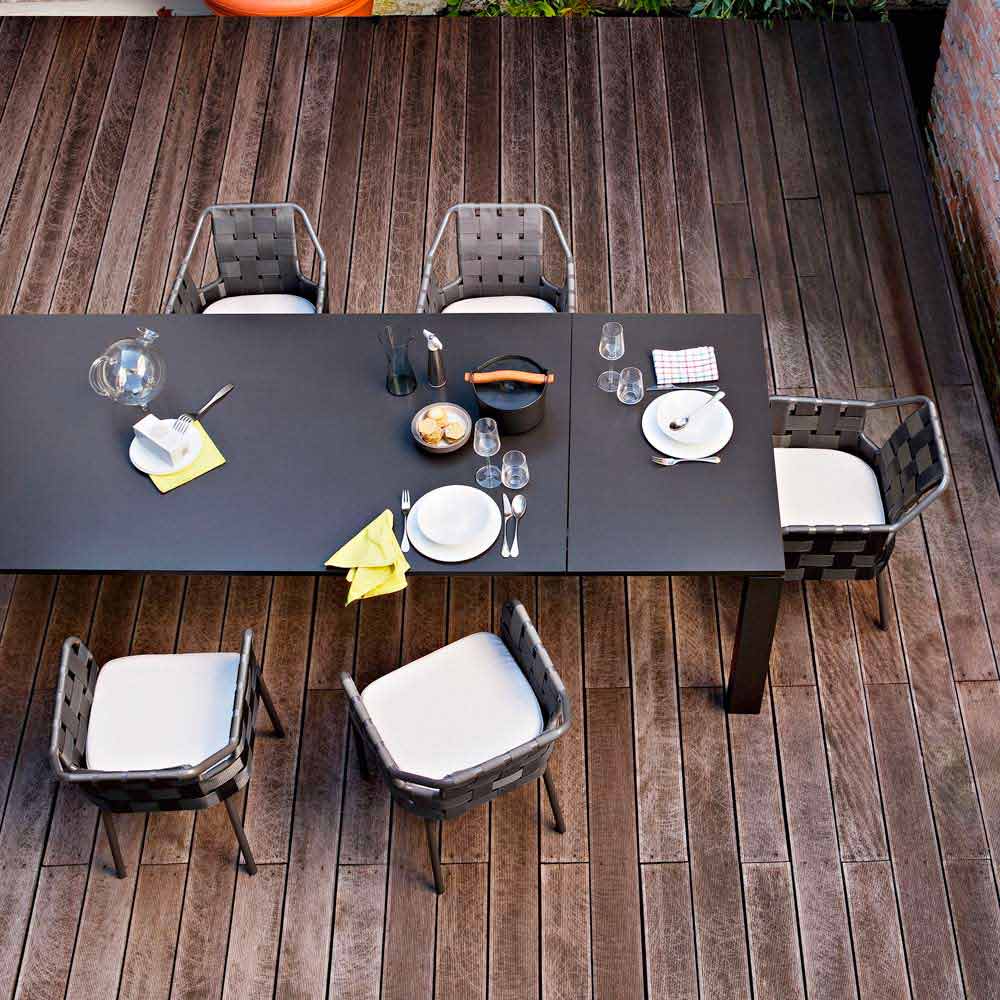 La table Dolmen a une structure en aluminium verni et un plateau en HPL de 12 mm d'épaisseur. Le système de rallonge est très facile à utiliser. Grâce à son design polyvalent, la table à rallonge Dolmen peut être utilisée aussi bien dans le jardin ou au bord de la piscine, que dans la salle à manger.