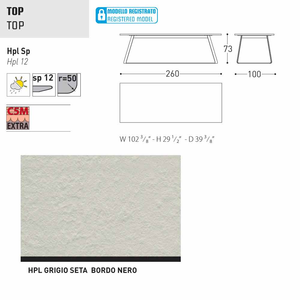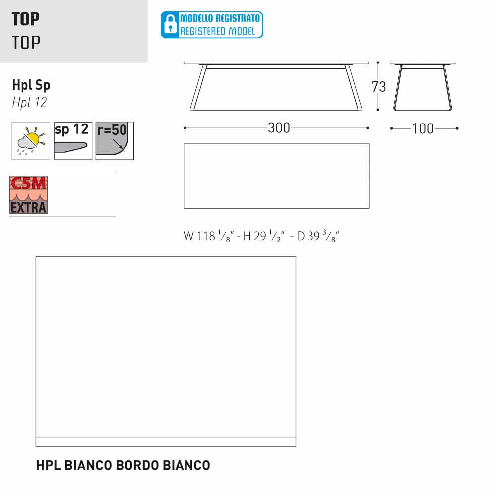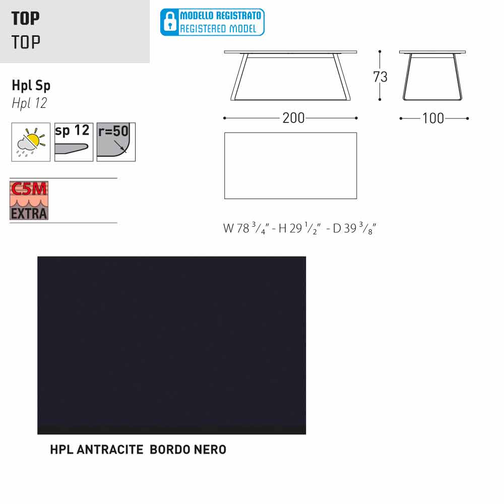 La table Kolonaki a une structure en acier étiré plat traité à cataphorèse pour l'extérieur et verni à poudre. Le plateau est en HPL de 12 mm d'épaisseur. Cette table est un modèle enregistré et elle est disponible en différentes dimensions et finitions. Grâce à son design polyvalent, la table de jardin Element peut être utilisée aussi bien dans le jardin ou au bord de la piscine, que dans la salle à manger.